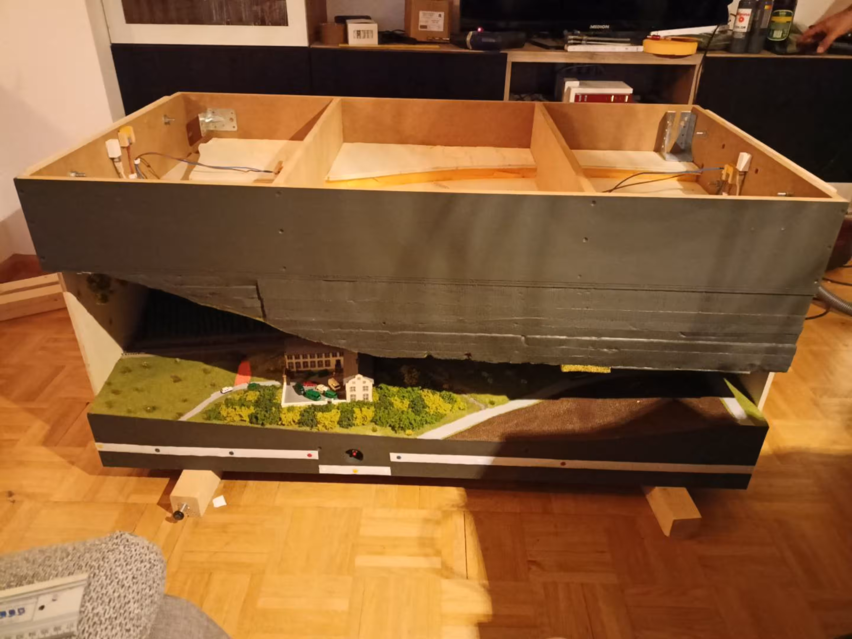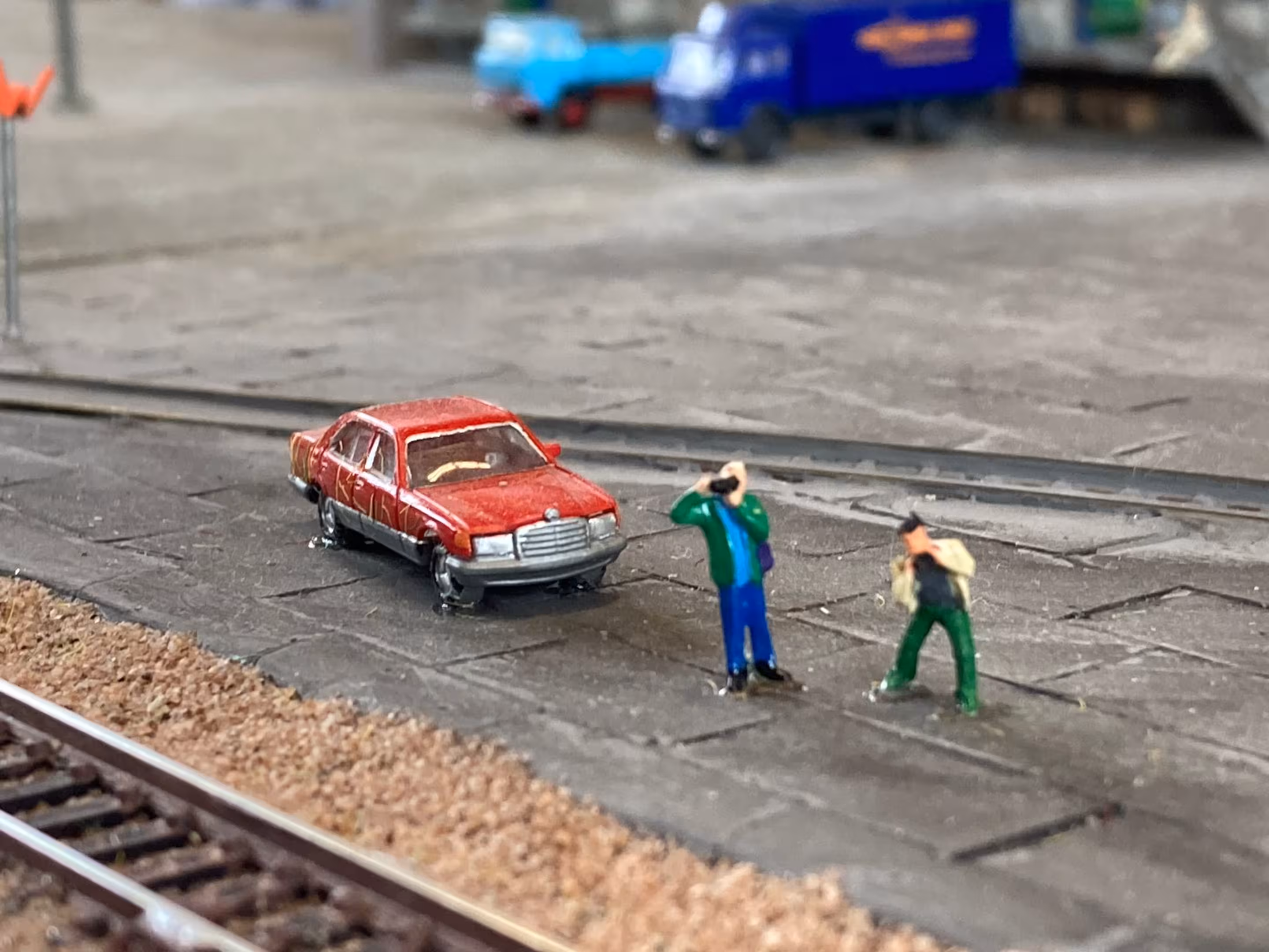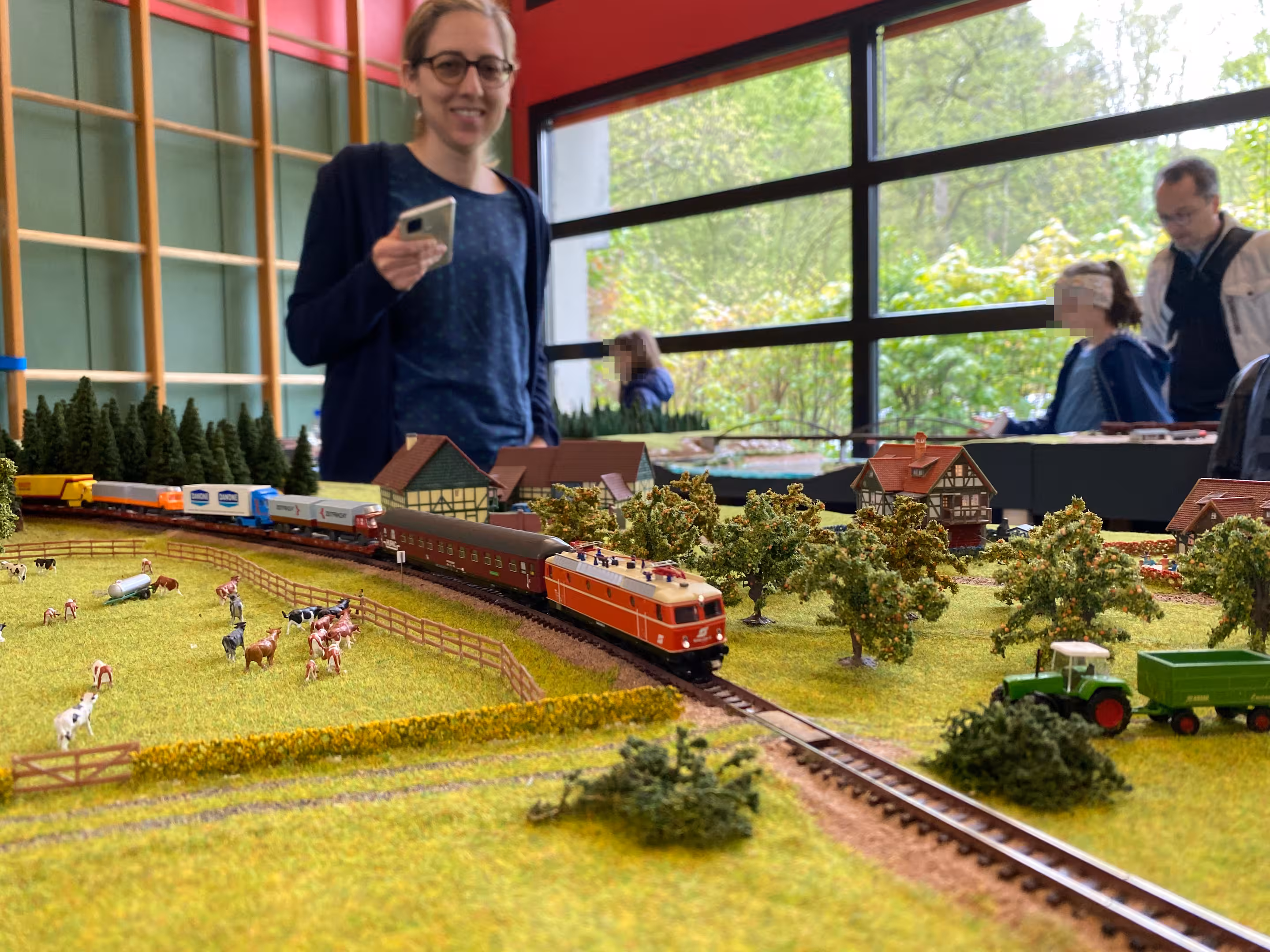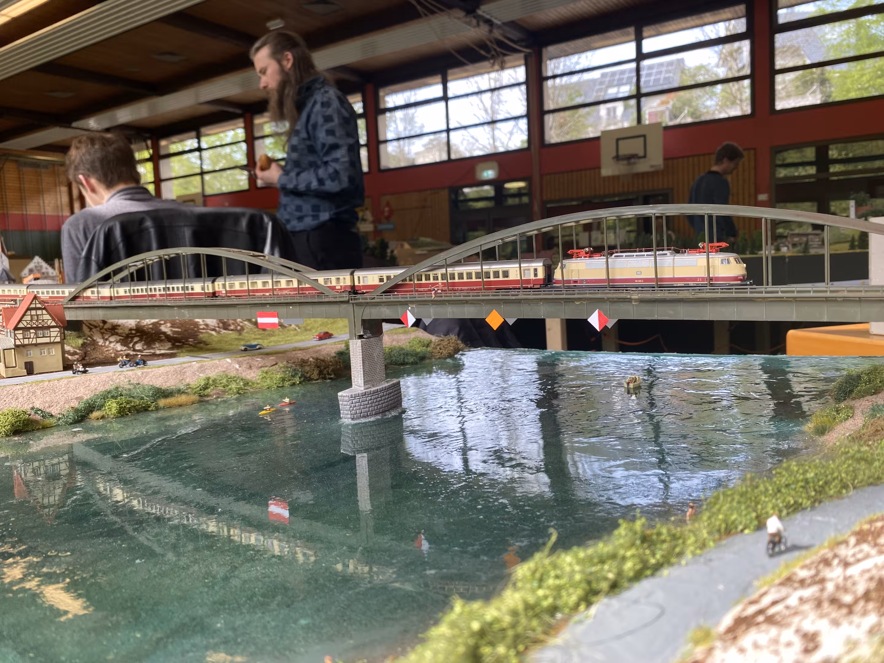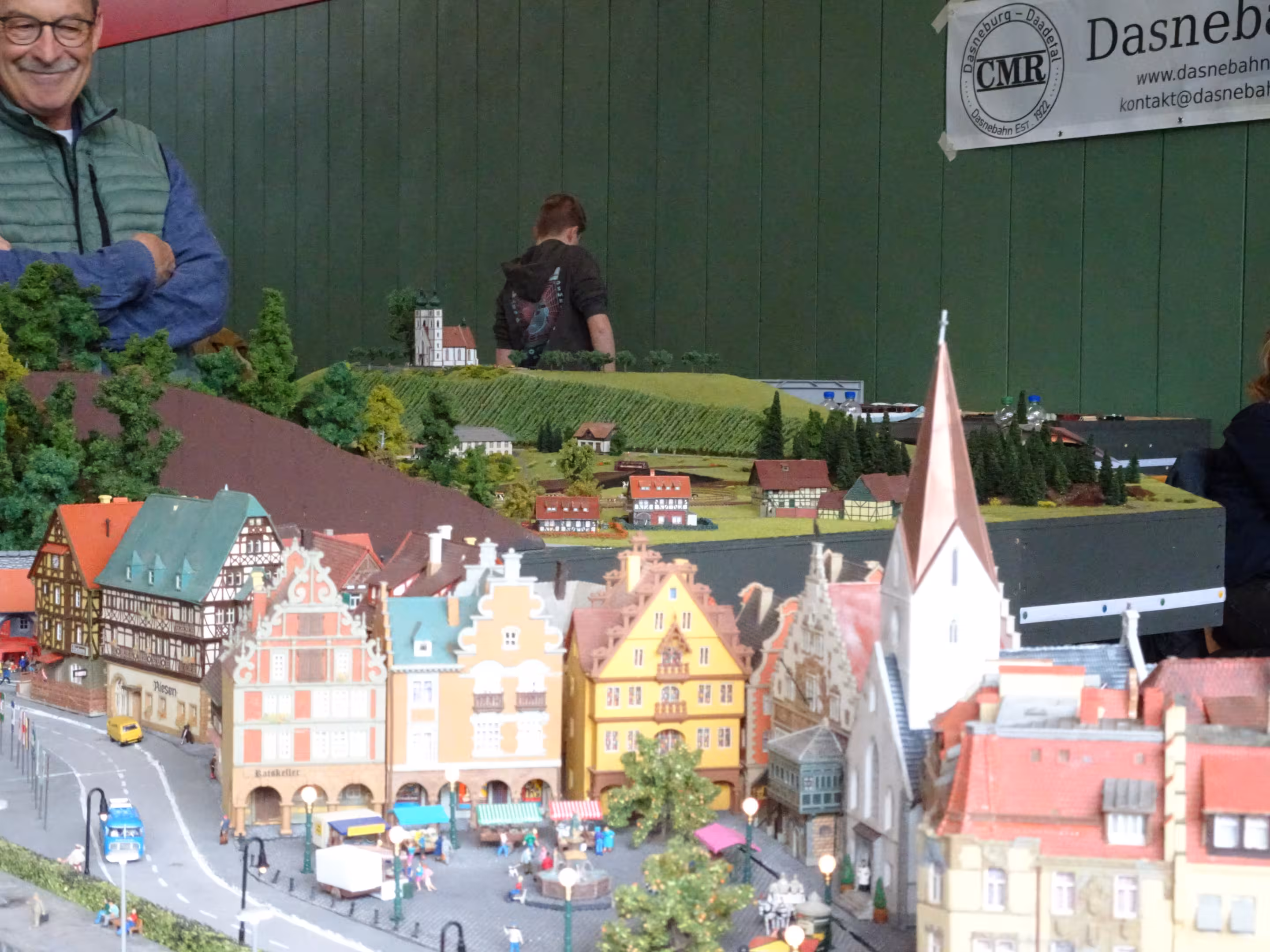 Desweiteren können wir wieder sagen: Unsere Anlage war ein Kindermagnet. Am 3. Ausstellungstag (1. Mai) war das Wetter trüber und es hat mehr geregnet – und so hat es auch mehr Familien in die Ausstellungshalle gelockt. Nicht nur die niedrige Anlagenhöhe, sondern auch das Miteinbinden in das Spielgeschehen hat zeitweise dafür gesorgt, dass an jeder Ecke Kindernasen über unsere Anlage starrten.