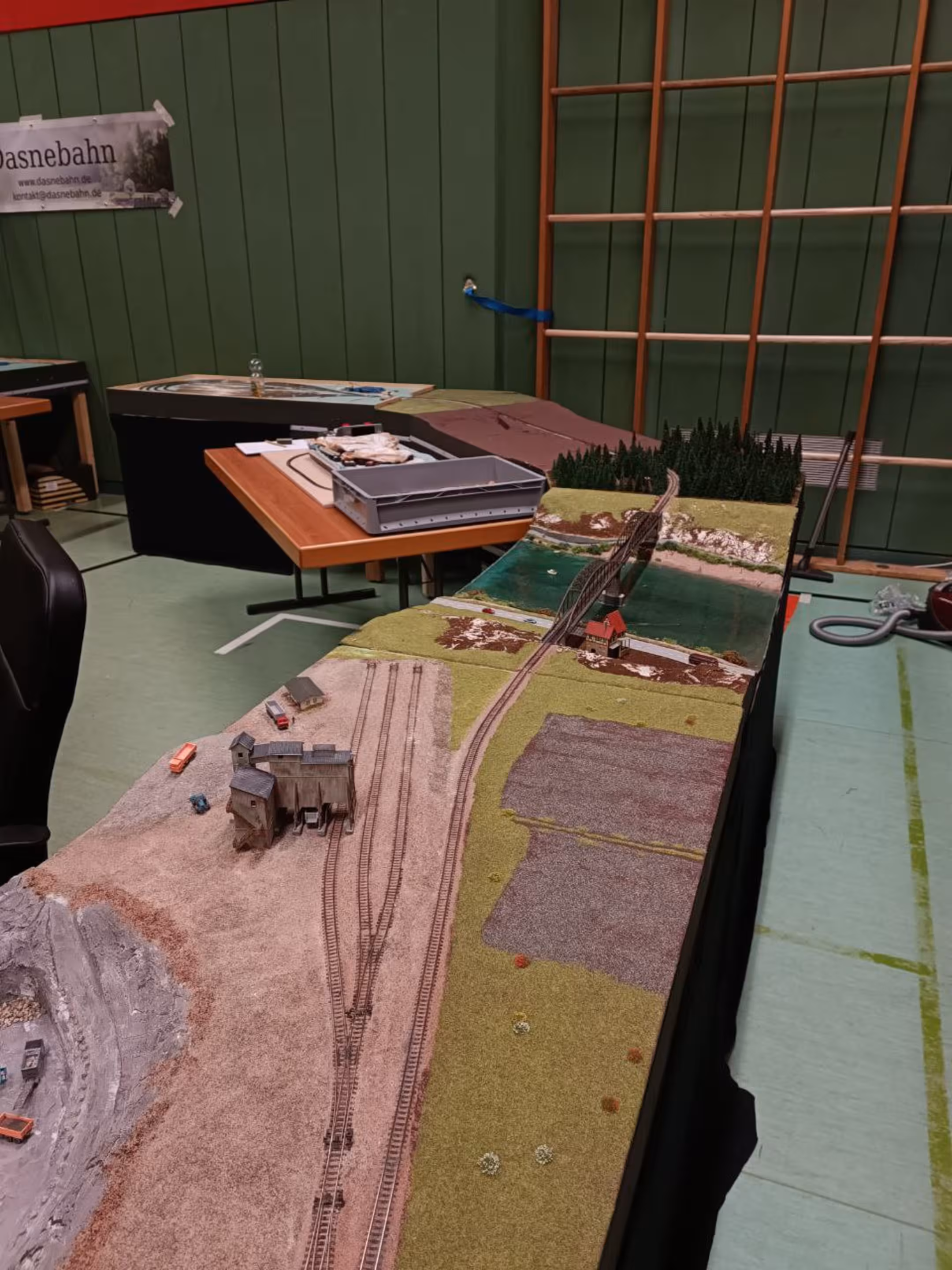 Unser Arrangement umfasste neben den schon bekannten Modulen Dasneburg, Daadetal, Rhaus-Querung und den drei Kurvensegmenten altes Kieswerk, kleiner Hain und Zäpflewald ganze vier neue Module: