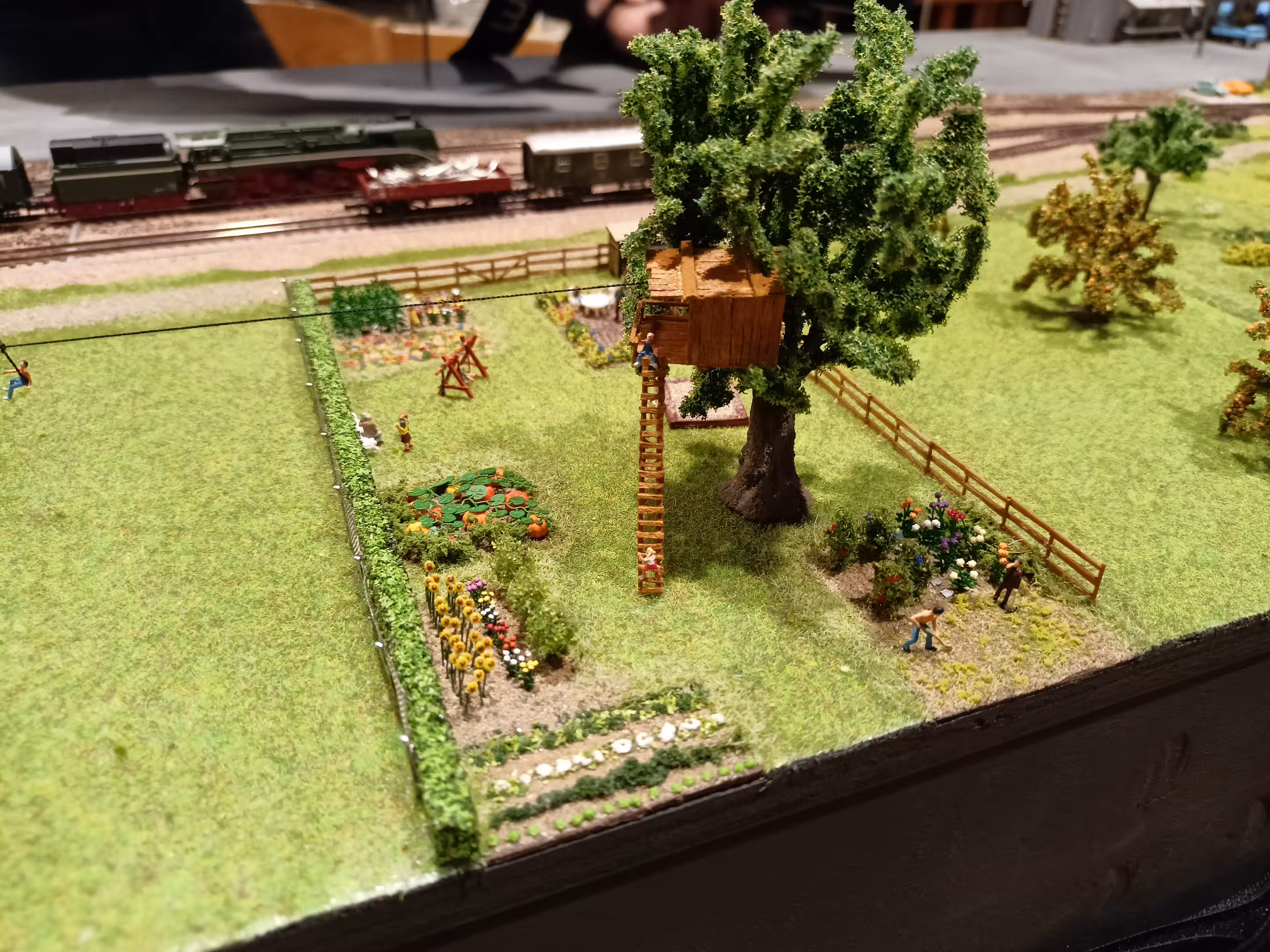 - diverse Ideen in den Gärten umsetzen (verschiedene Obst- & Gemüse-Sorten, diverse Szenerien: ein einfacher Garten von einer älteren Dame, ein Rückzugsgarten von einem Selbstversorger, der Partygarten, der Familiengarten, die Seilbahn mit dem Motto "Ab durch die Hecke!" (Die sogar einem echten Vorbild nachempfunden ist!))