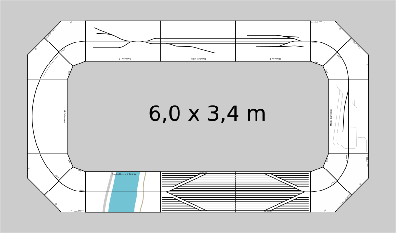 Unsere Anlage beschränkte sich dieses Mal hauptsächlich auf Daadetal, denn wir wollten unsere Arbeiten in diesem Jahr präsentieren: Zum einen die Updates an Gärtnerei und Grünbeuren und zum anderen unser neues Segment – die Verlängerung von Daadetal. Entsprechend ist das Arrangement kleiner gehalten.