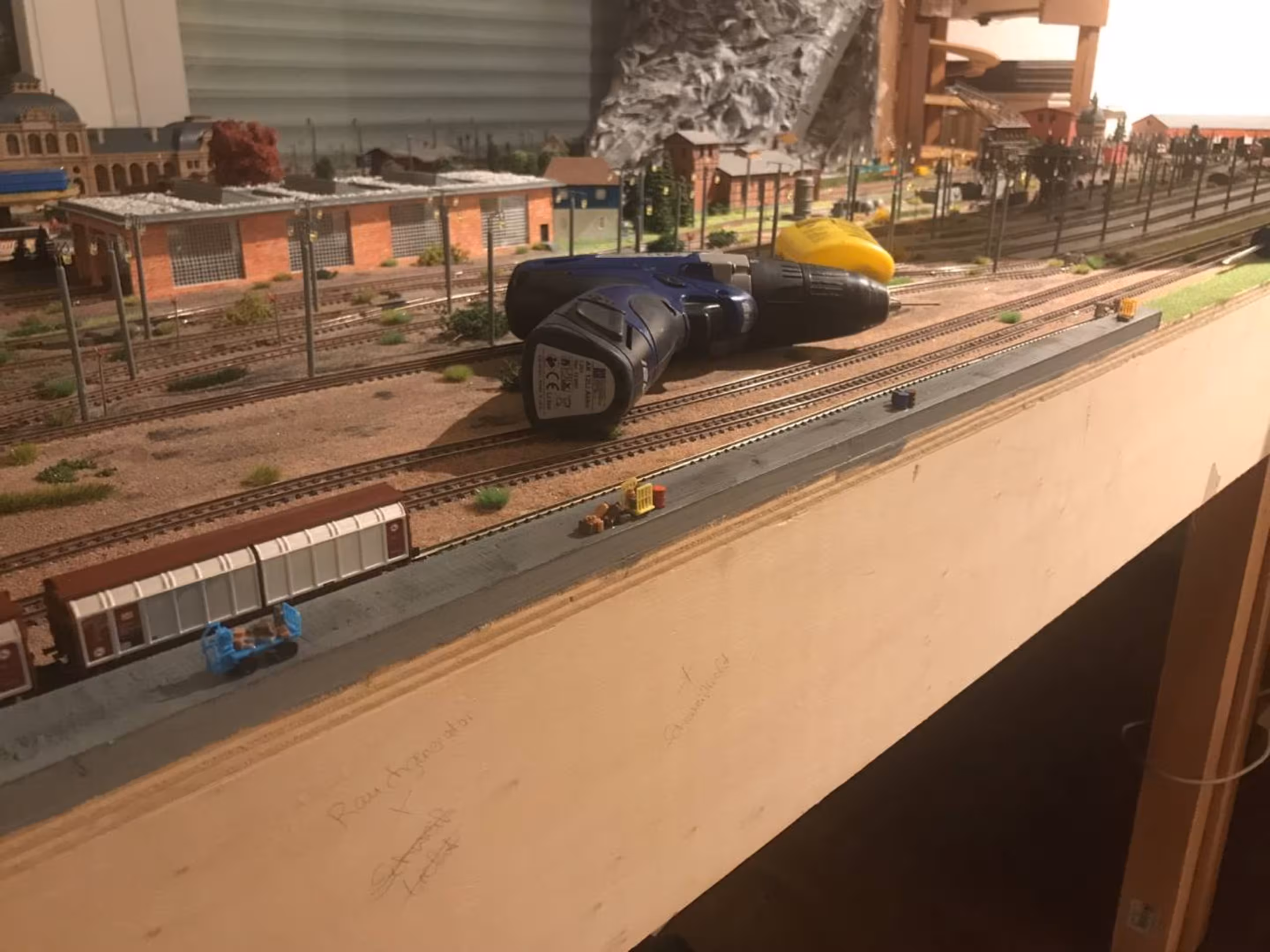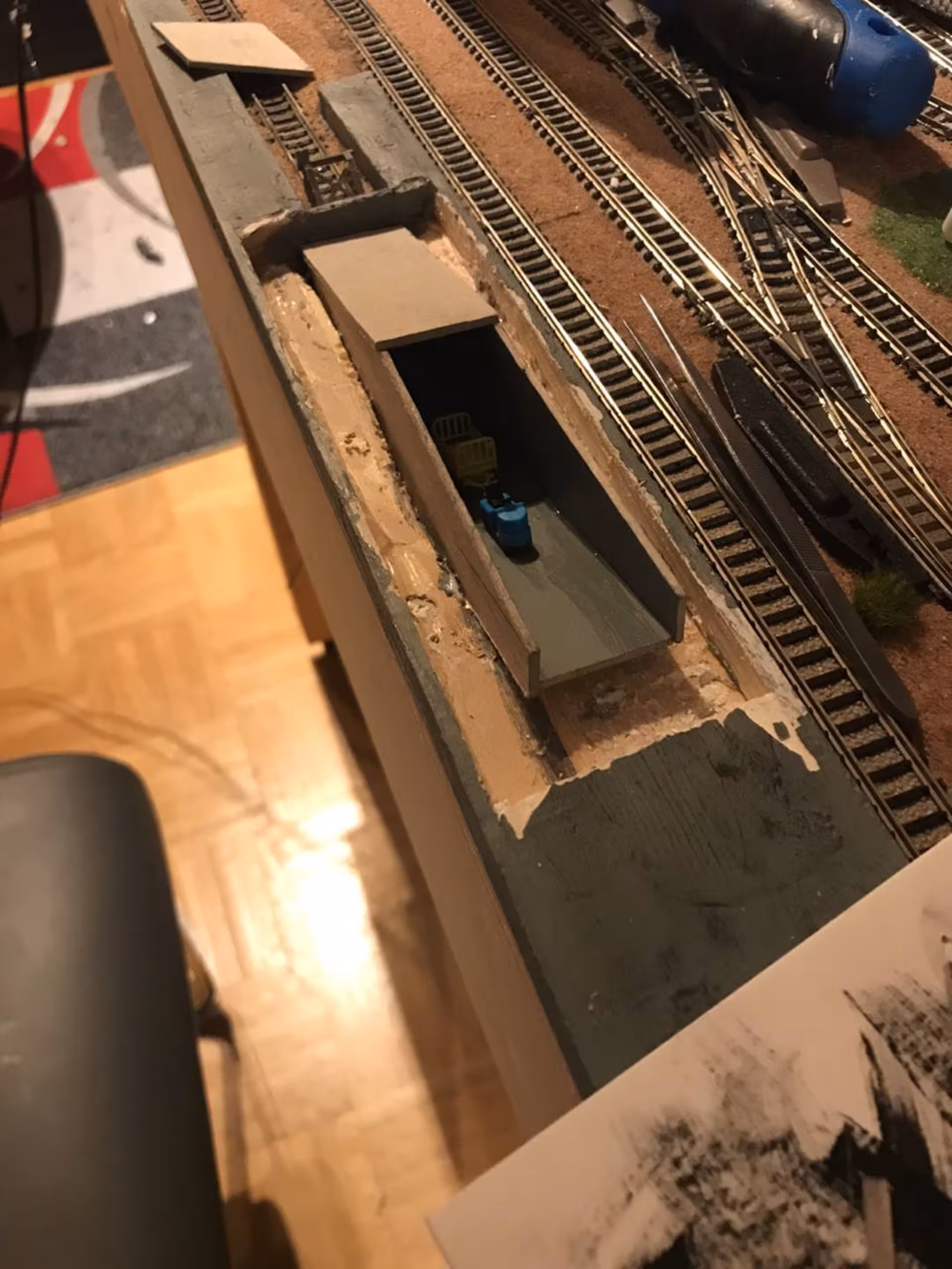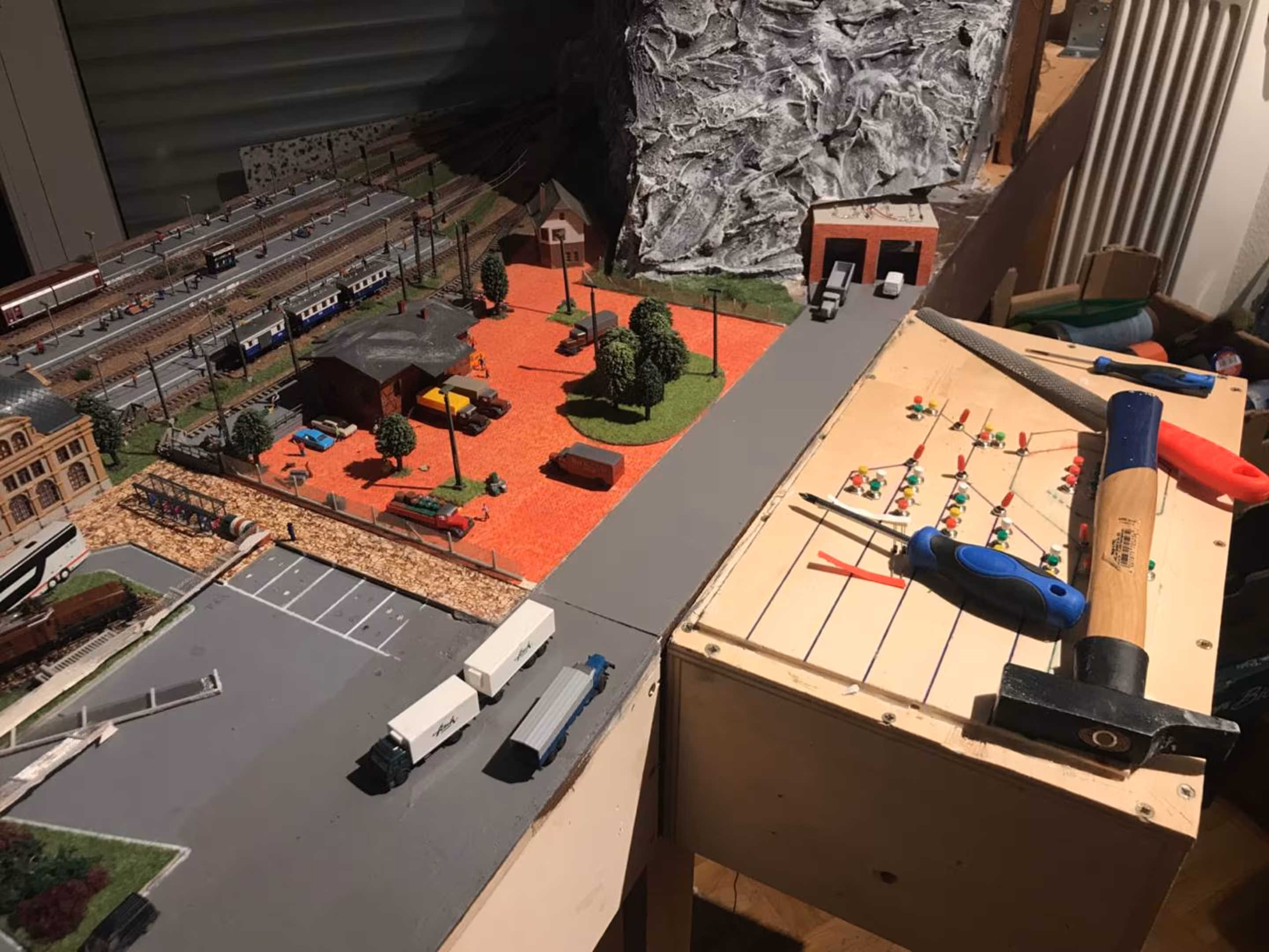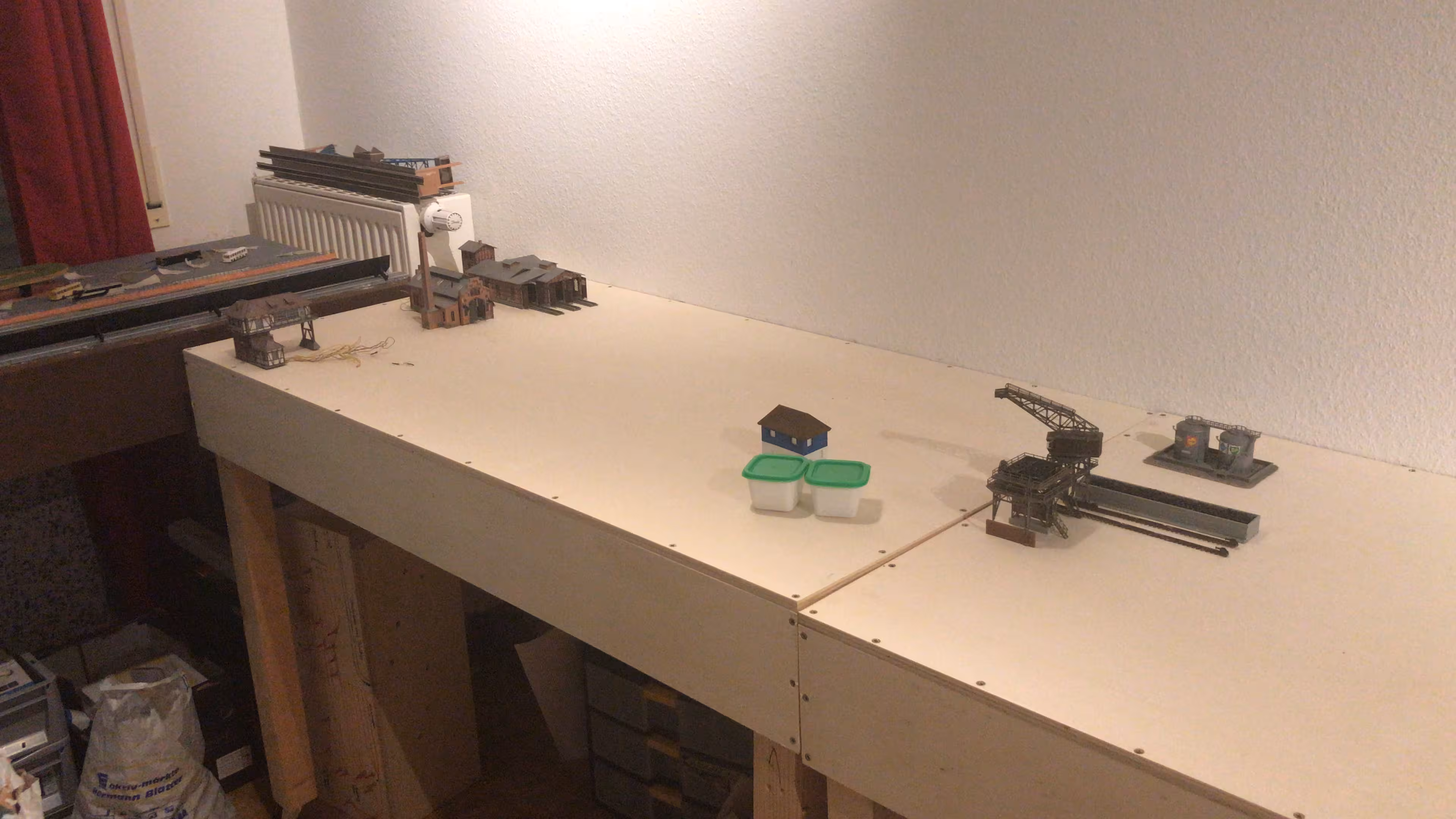 Aber so ganz ohne Modellbahn? Das kann Chris irgendwie nicht… So wurde im Oktober 2021 das Projekt "Kleinanlage" gestartet. (Was daraus entstand, erfahrt ihr hier.) Die beim Bau der neuen Anlage gemachten Erfahrungen bewogen uns, den schweren Gips-Berg abzutragen und den Bahnhof neu zu gestalten. Aus diesem Grund wurde mittlerweile alles bis auf das Betriebswerk wieder zurückgebaut.