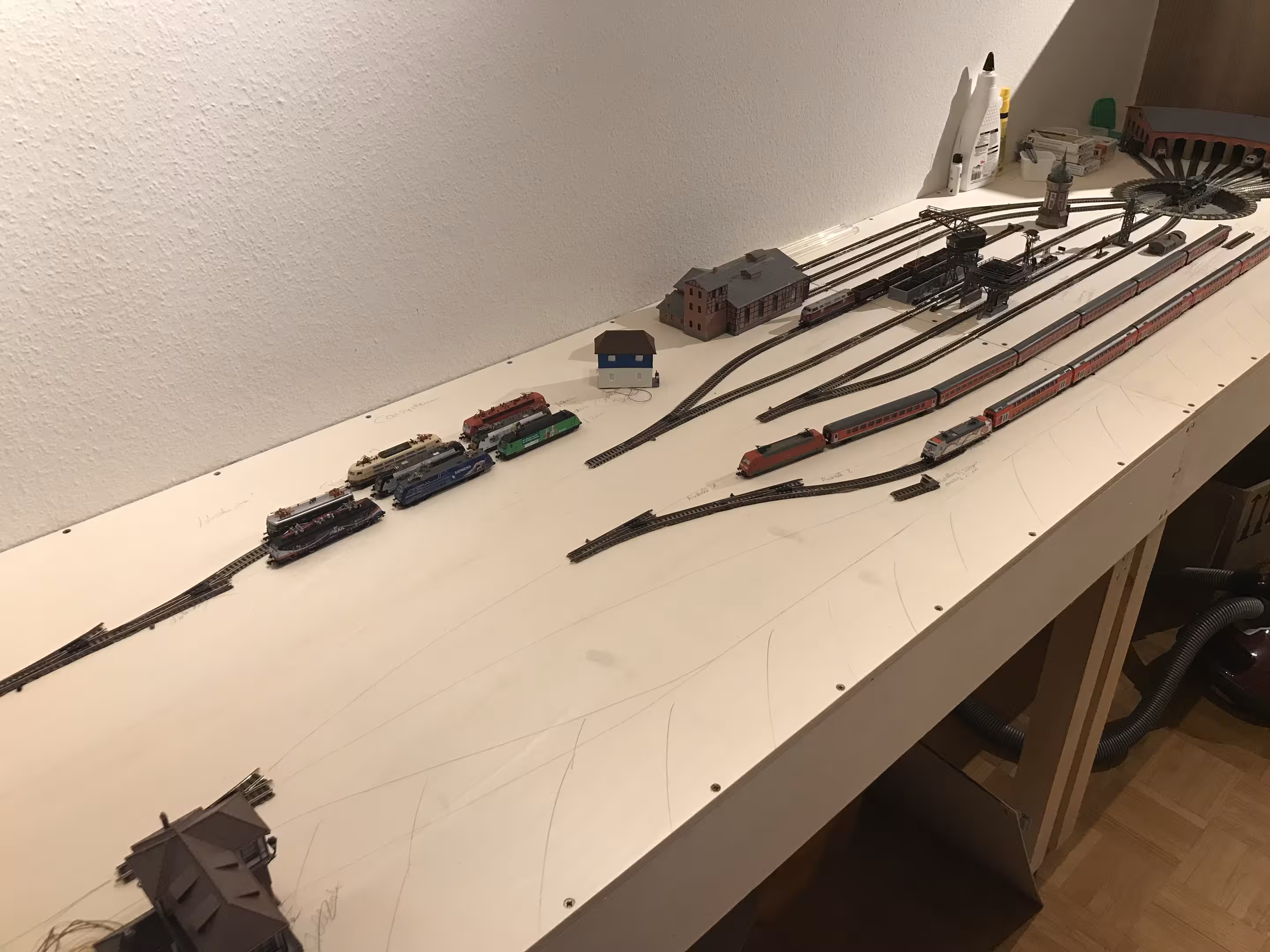 stand fast nichts mehr im Wege, die Anlage zu vergrößern. – Fahren kann man ja immernoch, wenn die Anlage mal irgendwo groß aufgebaut wird.