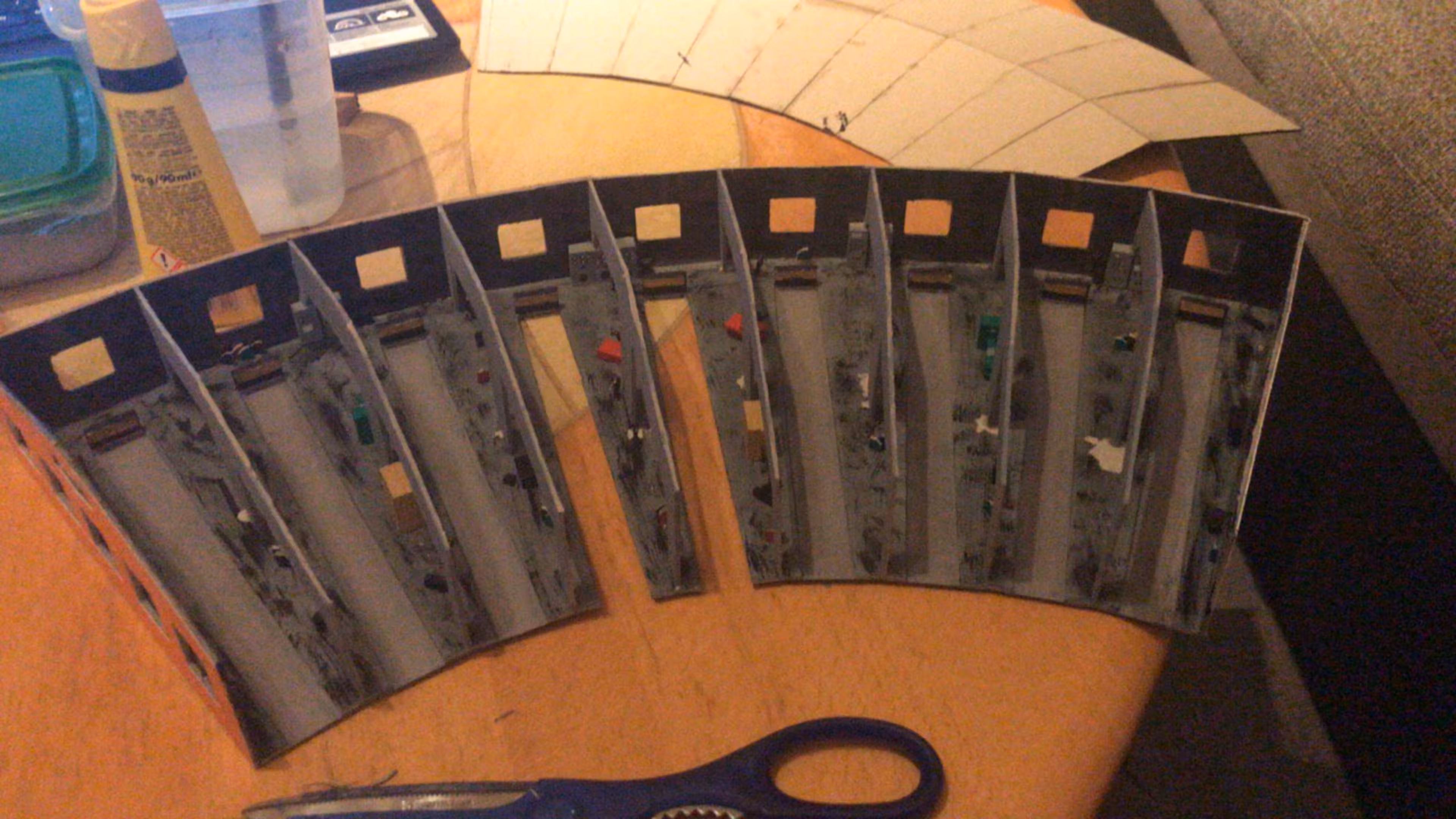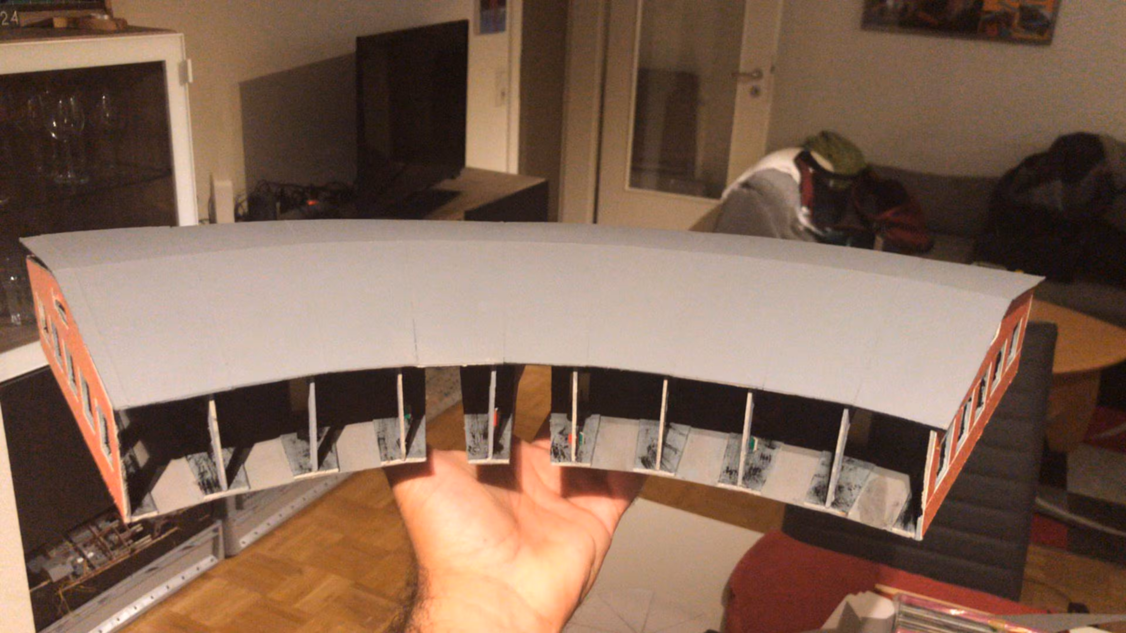 Wie man auf den Bildern vielleicht erkennen kann, benötigt dieses Modul sehr viel Platz: Es steht diagonal in der Wohnung. Kein Wunder also, dass es Chris irgendwann zu viel wurde. Daher wurden die Segmente in den Keller verfrachtet.