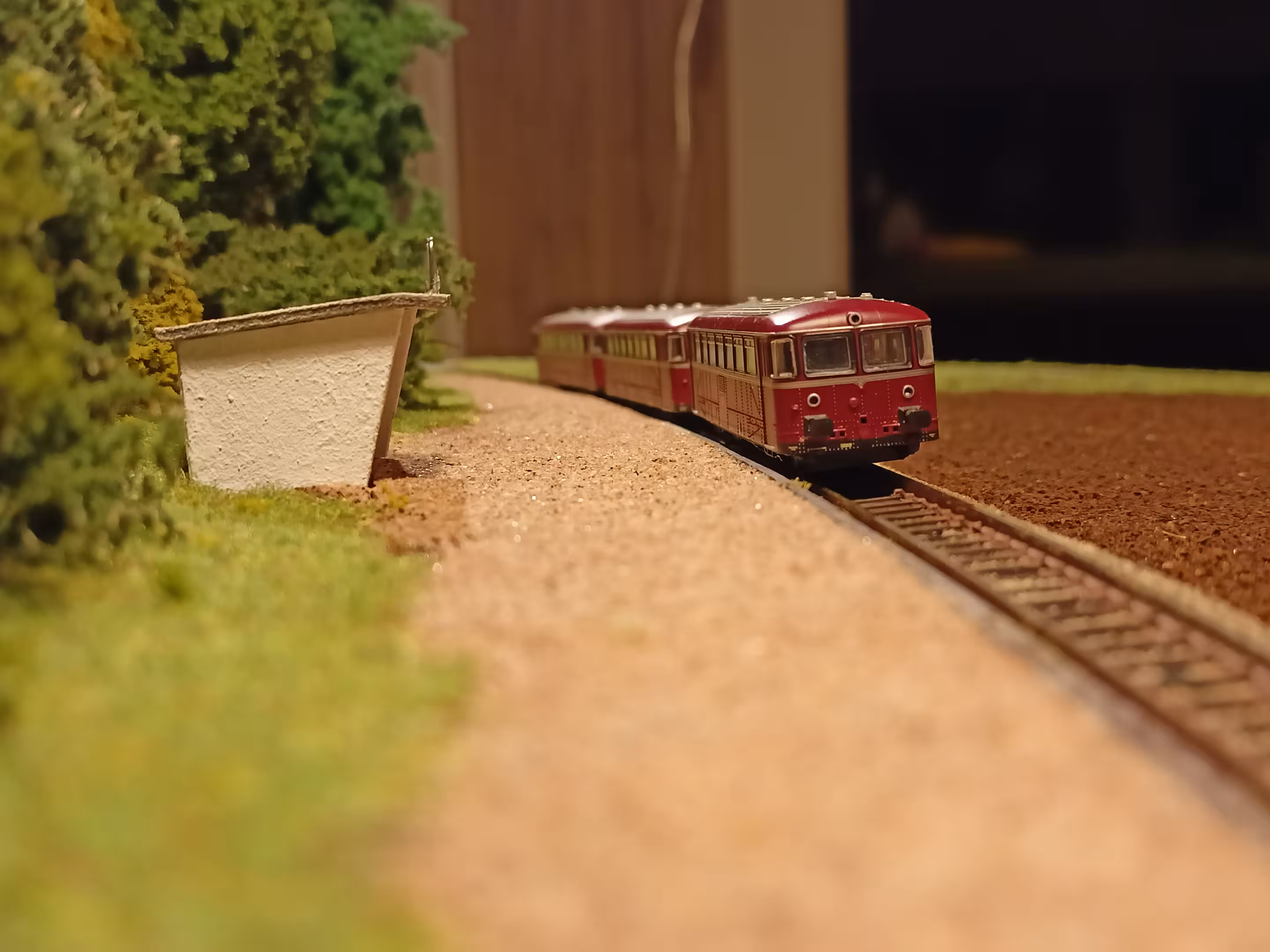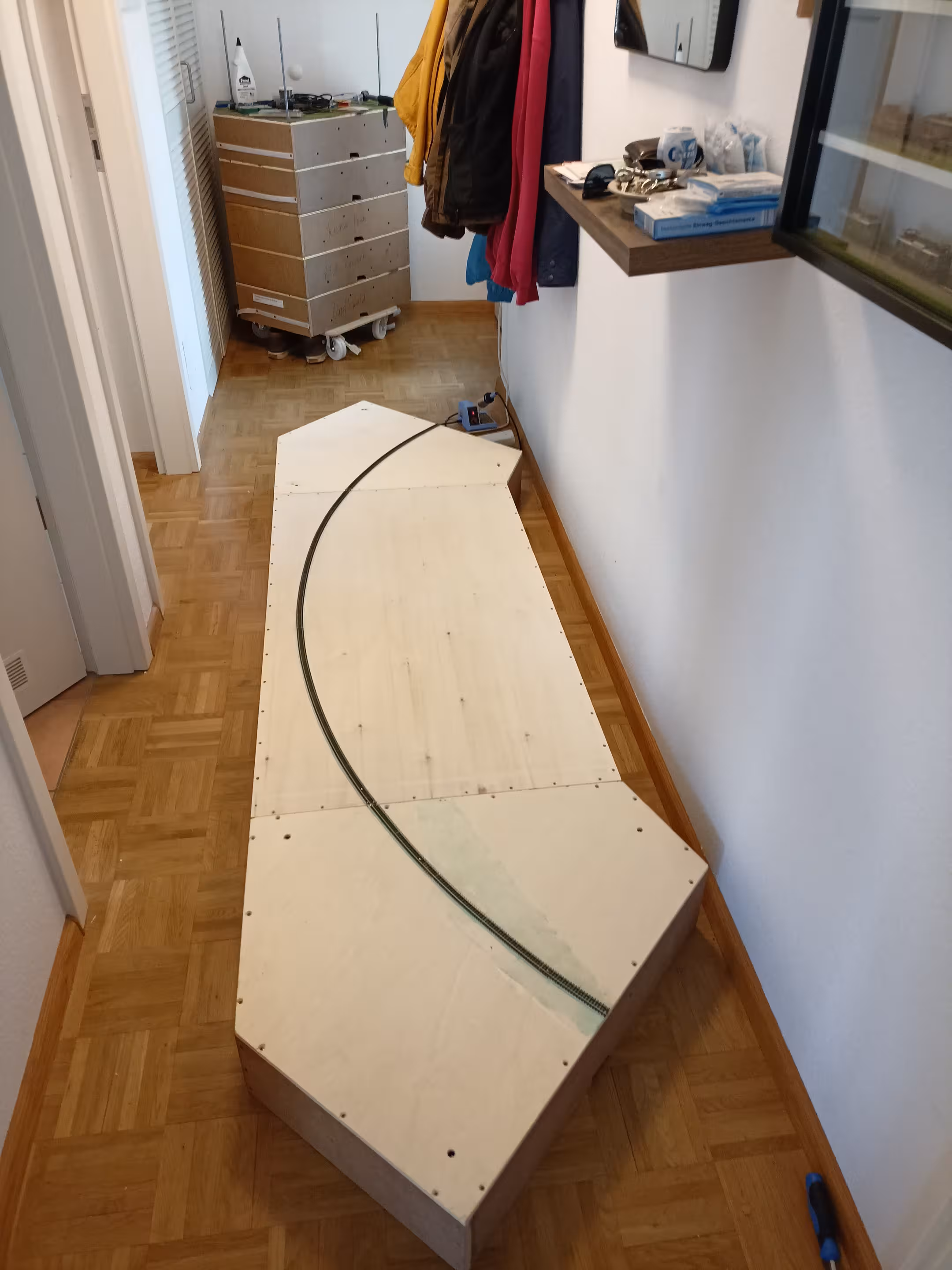 Würde die Strecke noch genug Abstand zum Rand haben oder sogar schon über den Holzkasten hinausragen?
