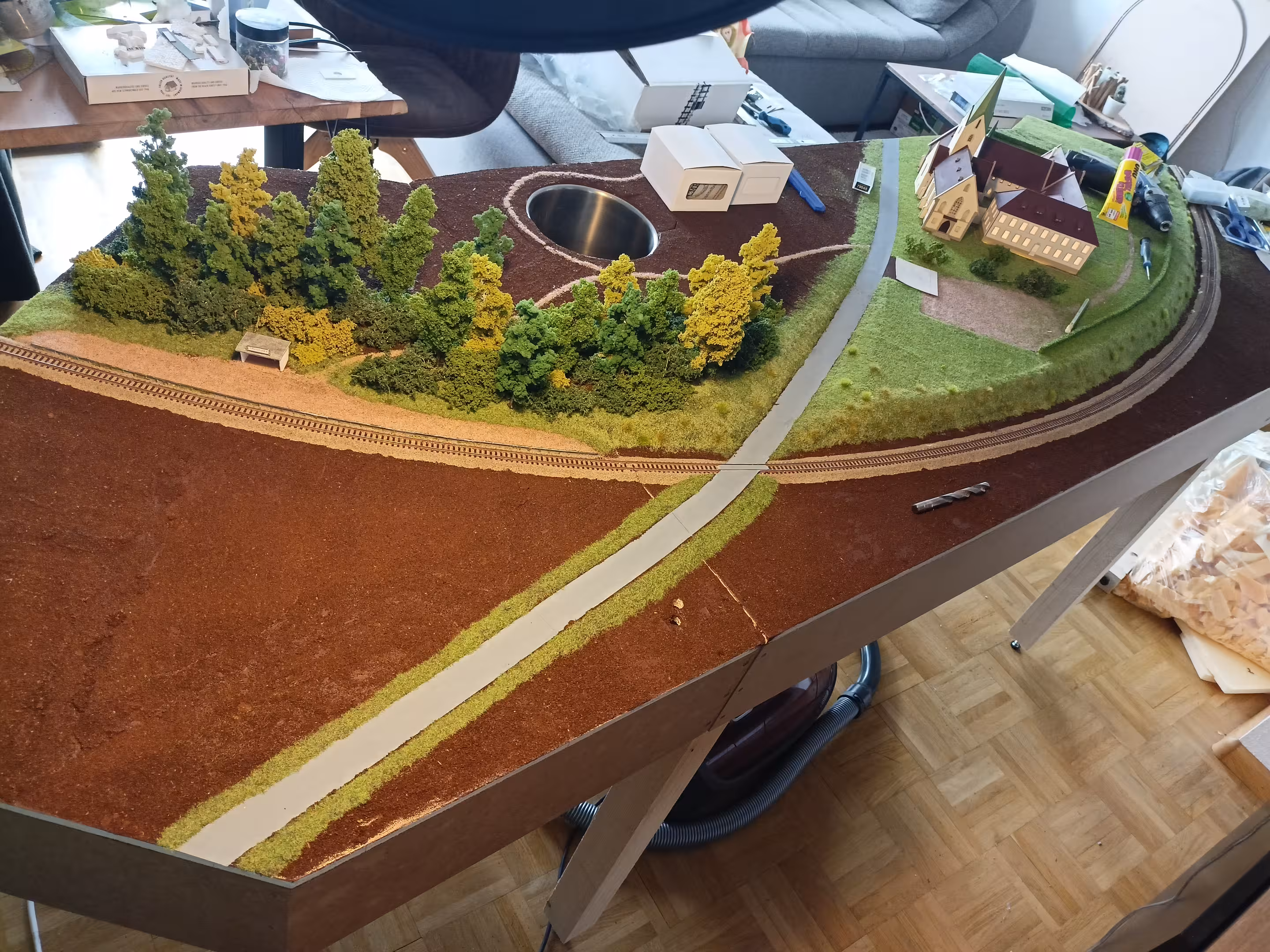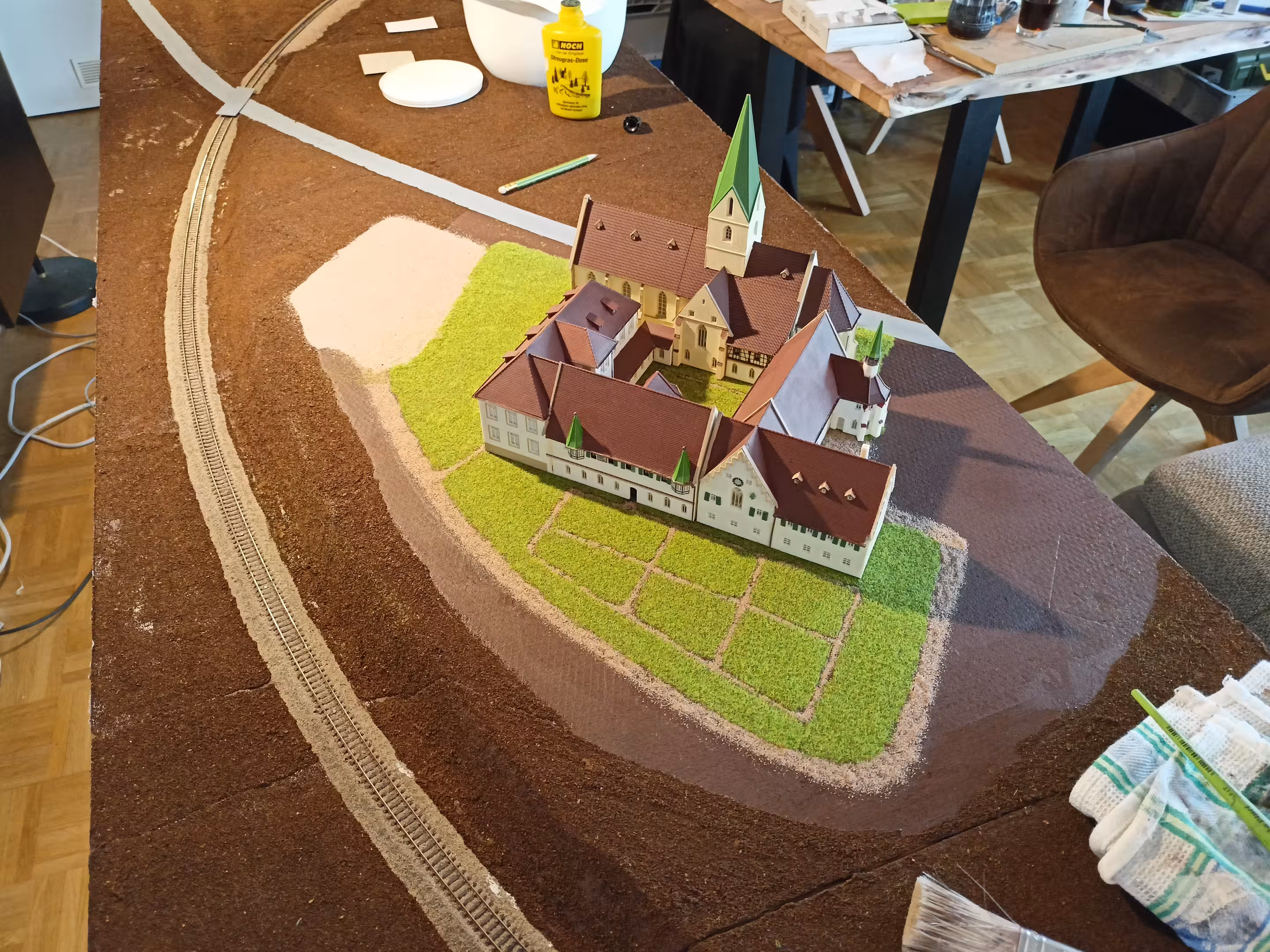Bei dem Gedankenspiel schien immer wieder das gleiche Bild im Kopf aufzutauchen: Die Kurve um das Kloster Blaubeuren, wie sie schon bei der alten Anlage auf der Ausstellung 2019 einmal aufgebaut war – nur größer und mit mehr Platz. Da auch Chris exakt das gleiche Bild im Kopf hatte, war schnell klar: So machen wir's!