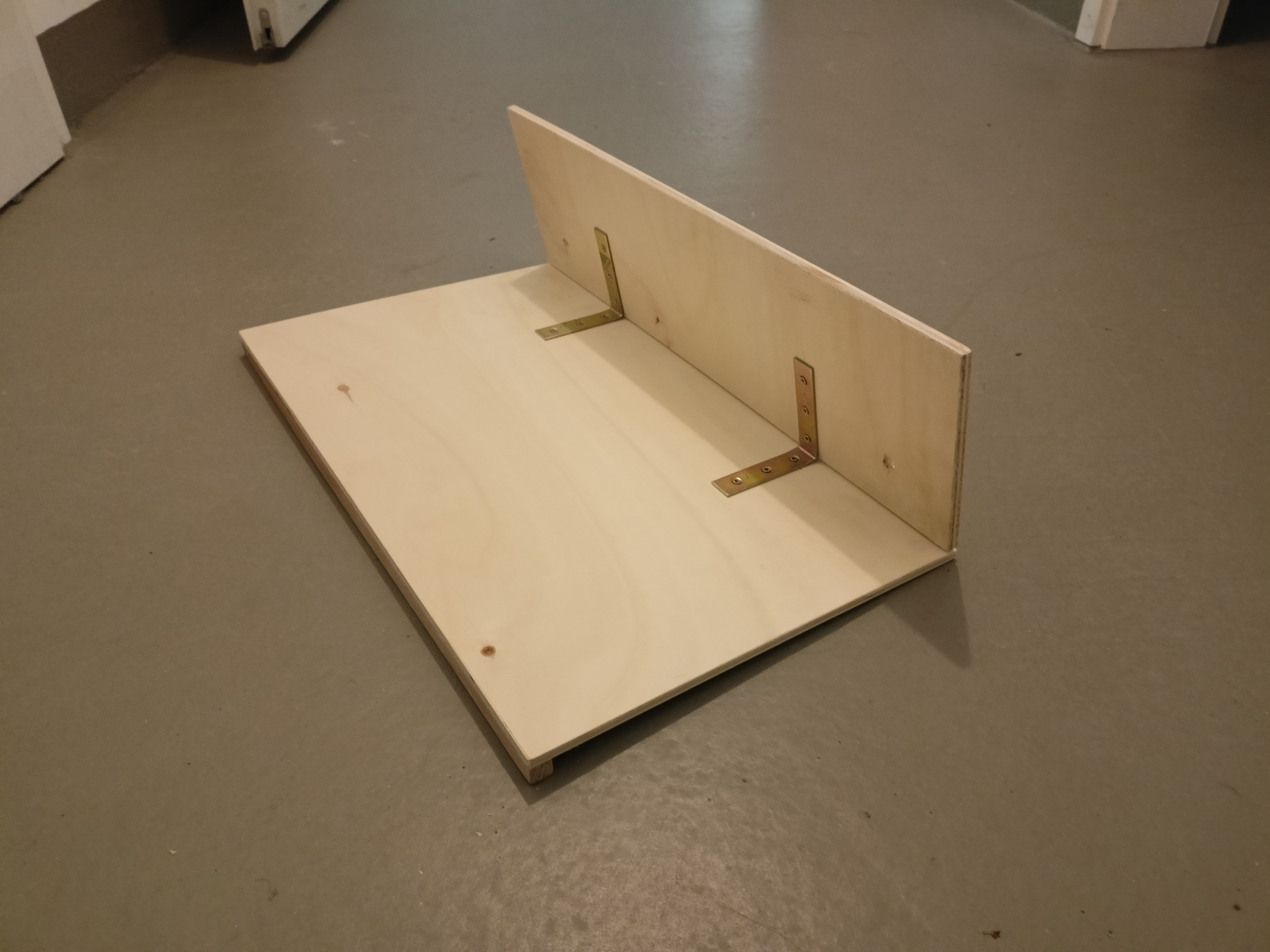 Bestehend aus 2 Brettern (50x15cm und 50x30cm), 2 Winkeln und einem kleinen 15x15 Vierkantholz waren die beiden Halterungen fix gebaut.