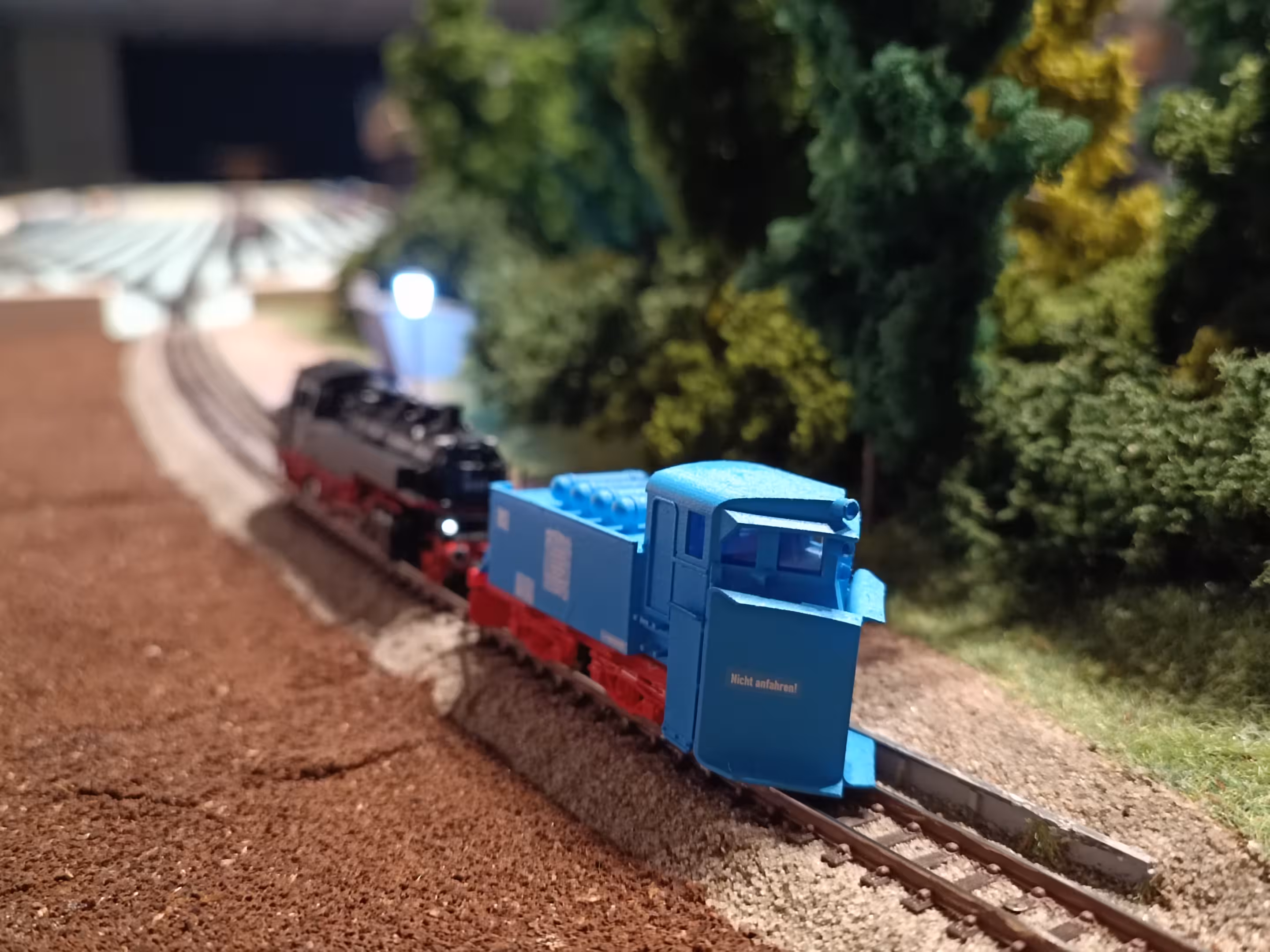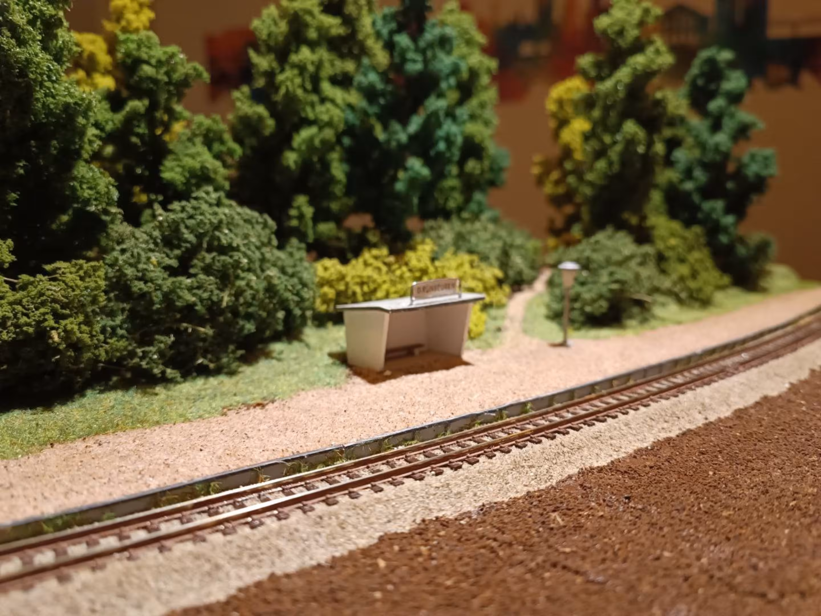 Auch diese Baustelle wurde wegen der letzten Ausstellung im April/Mai eröffnet: Einige Fahrzeuge konnten den Bahnsteig leider nicht passieren – und das, obwohl Marcel eine Spurlehre verwendet hatte und sogar dazu noch etwas Abstand gehalten hatte! Aber es scheint, dass wegen der Überhöhung manche Fahrzeuge Richtung Bahnsteig "runterrutschen" und daher doch nicht dran vorbeikommen.