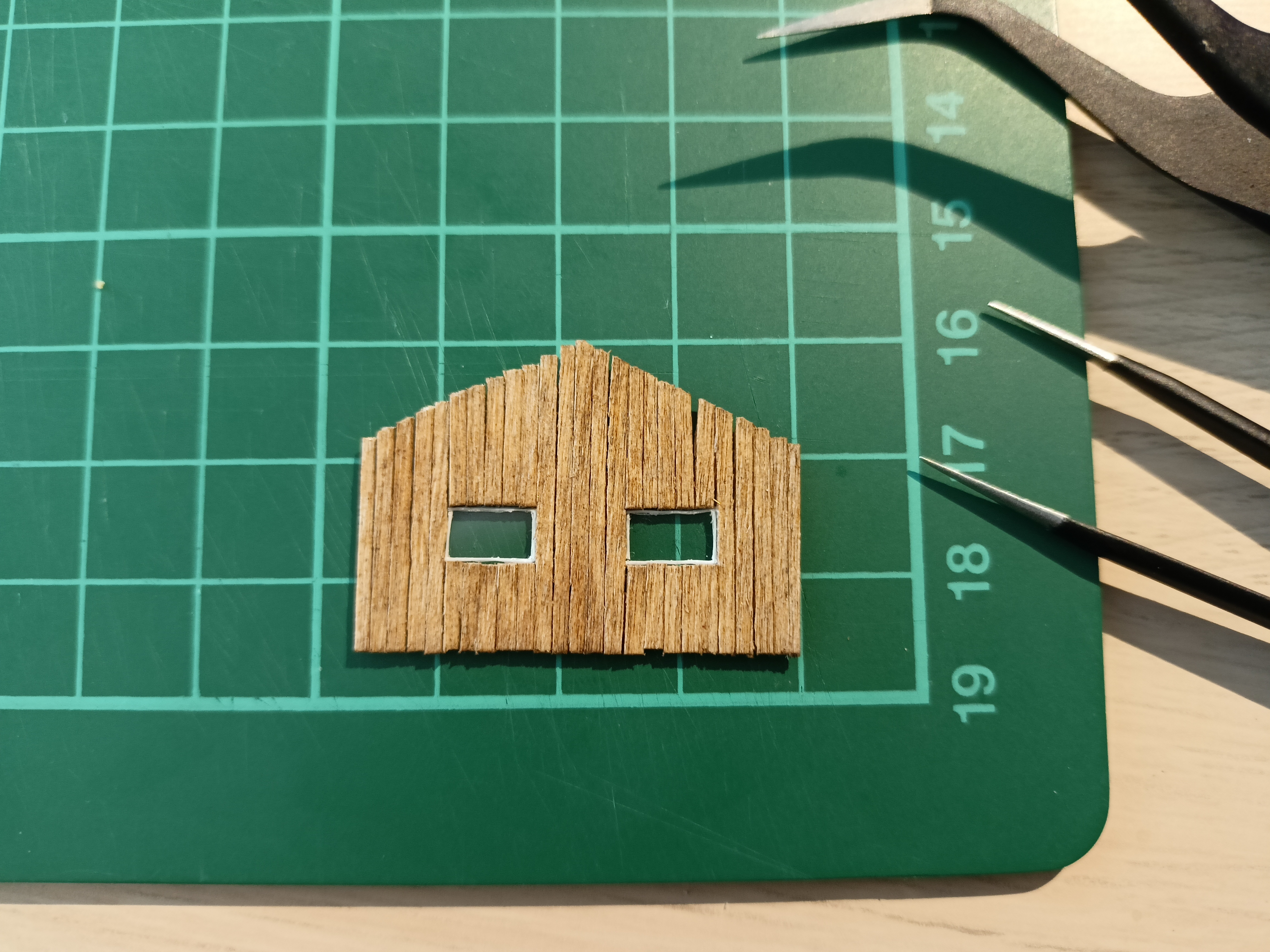 Das ca. 0.8mm starke Holz kann man nun wunderbar für die Wände verwenden!