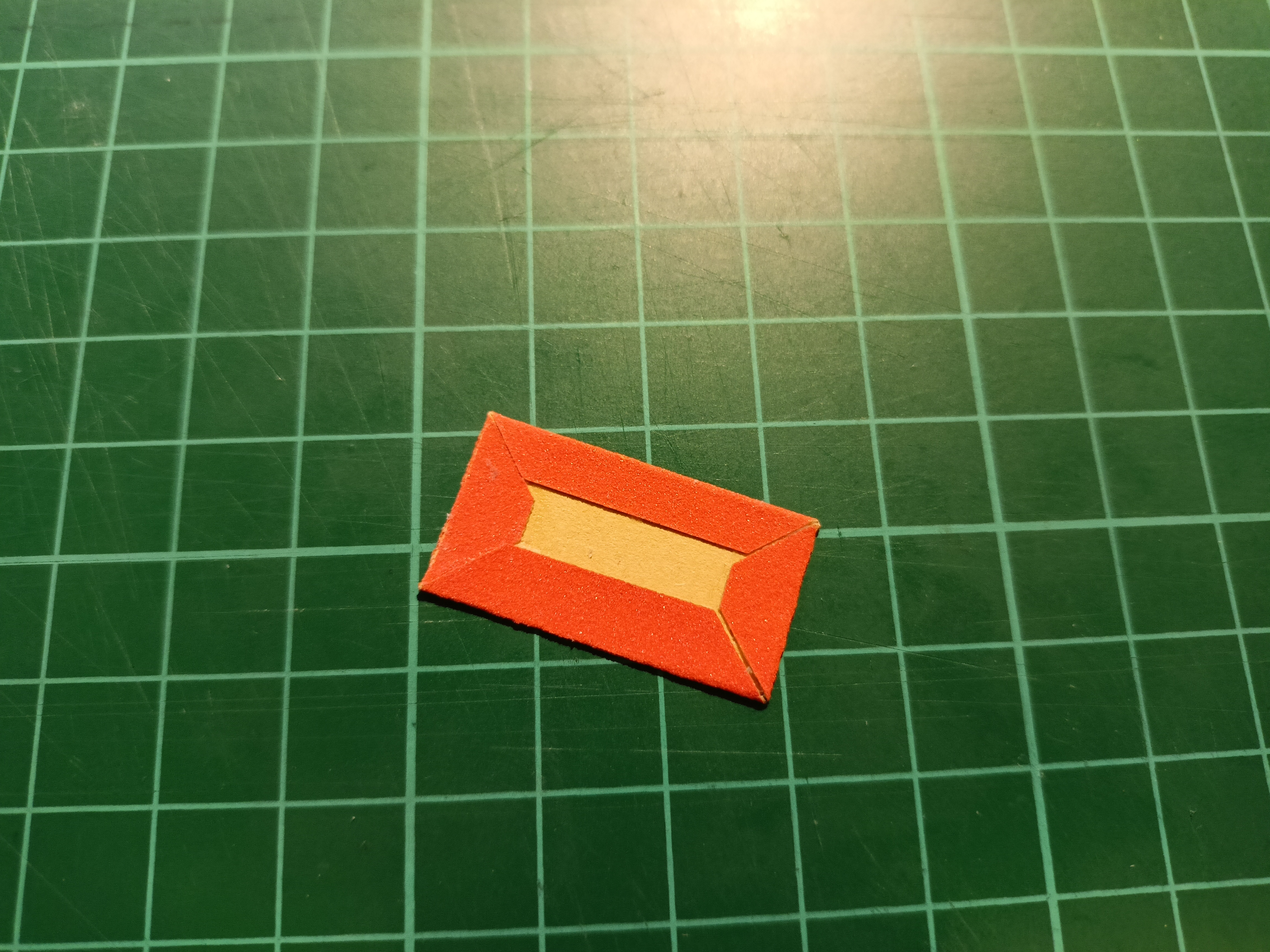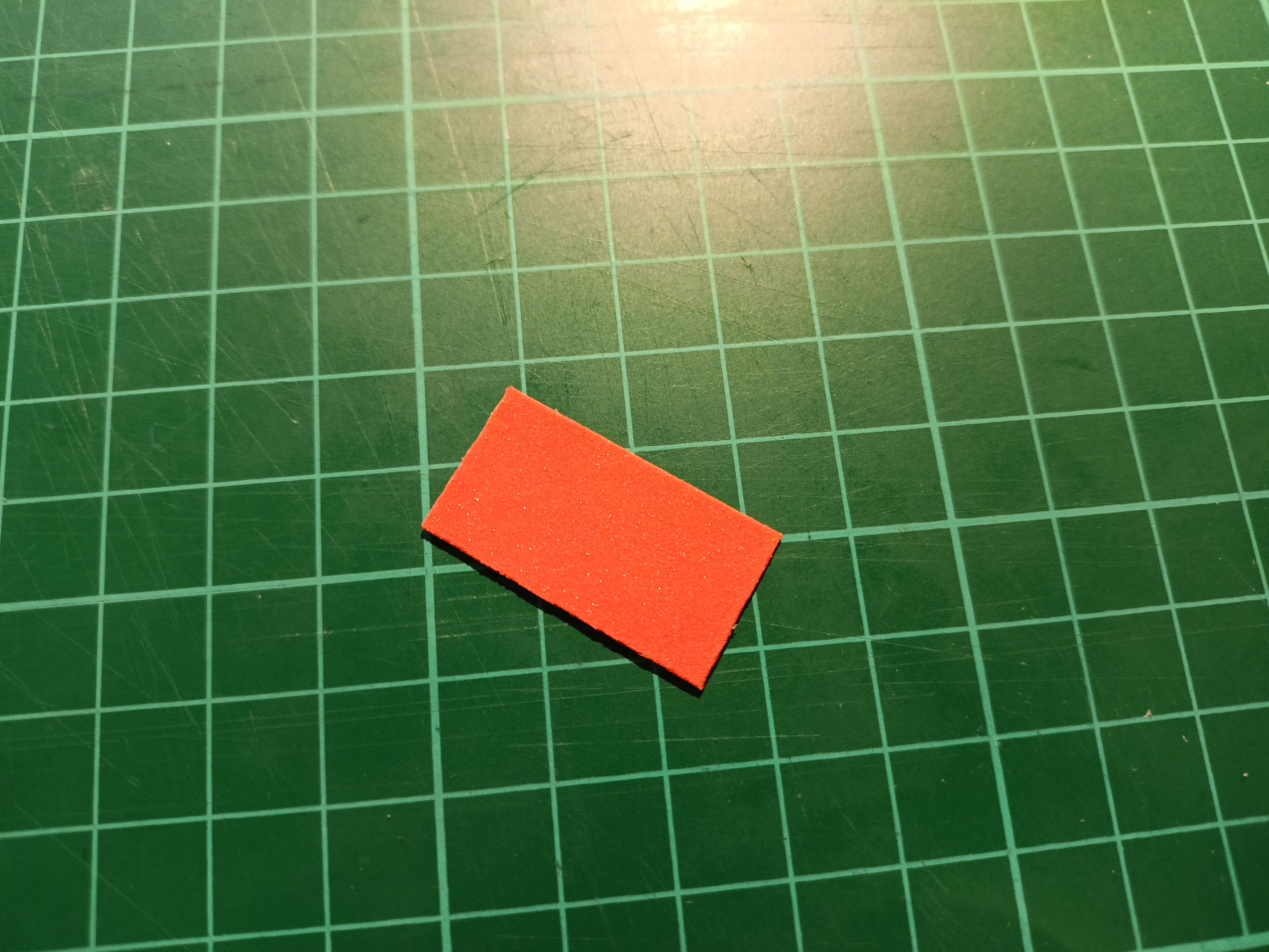 Das Dach des Anbaus ist aus einem Stück Schleifpapier gemacht. (Wem dieses Schleifpapier bekannt vorkommt: Ja, es sind die Reste aus dem selben Schleifpapier, aus dem auch der Tennisplatz gefertigt ist!) Um die Seiten optisch schöner zu gestalten, wurden alle 4 Seiten einmal umgeschlagen und mit Kleber fixiert. Anschließend wurde das Schleifpapier mit einfacher Wasserfarbe schwarz gefärbt.