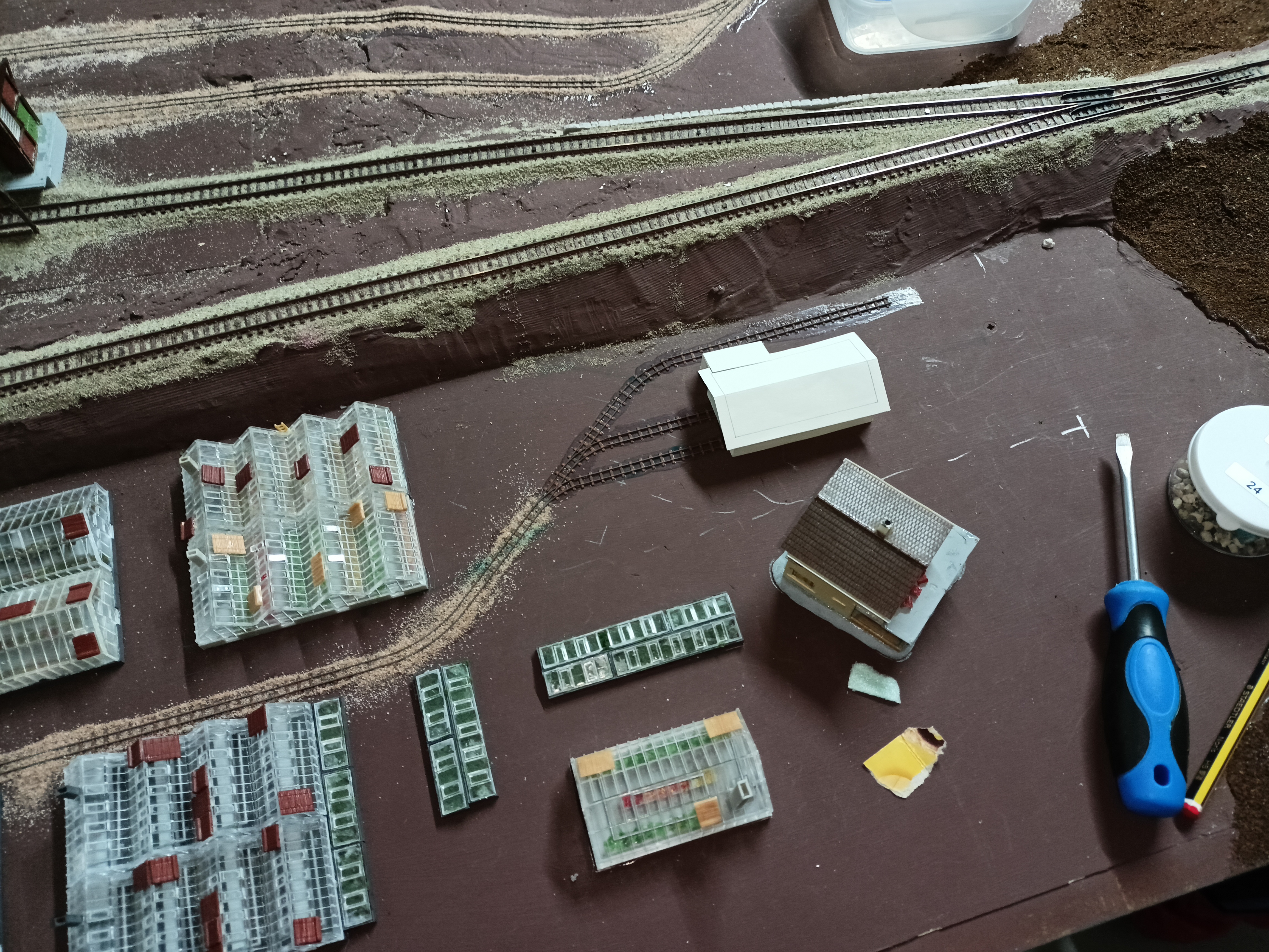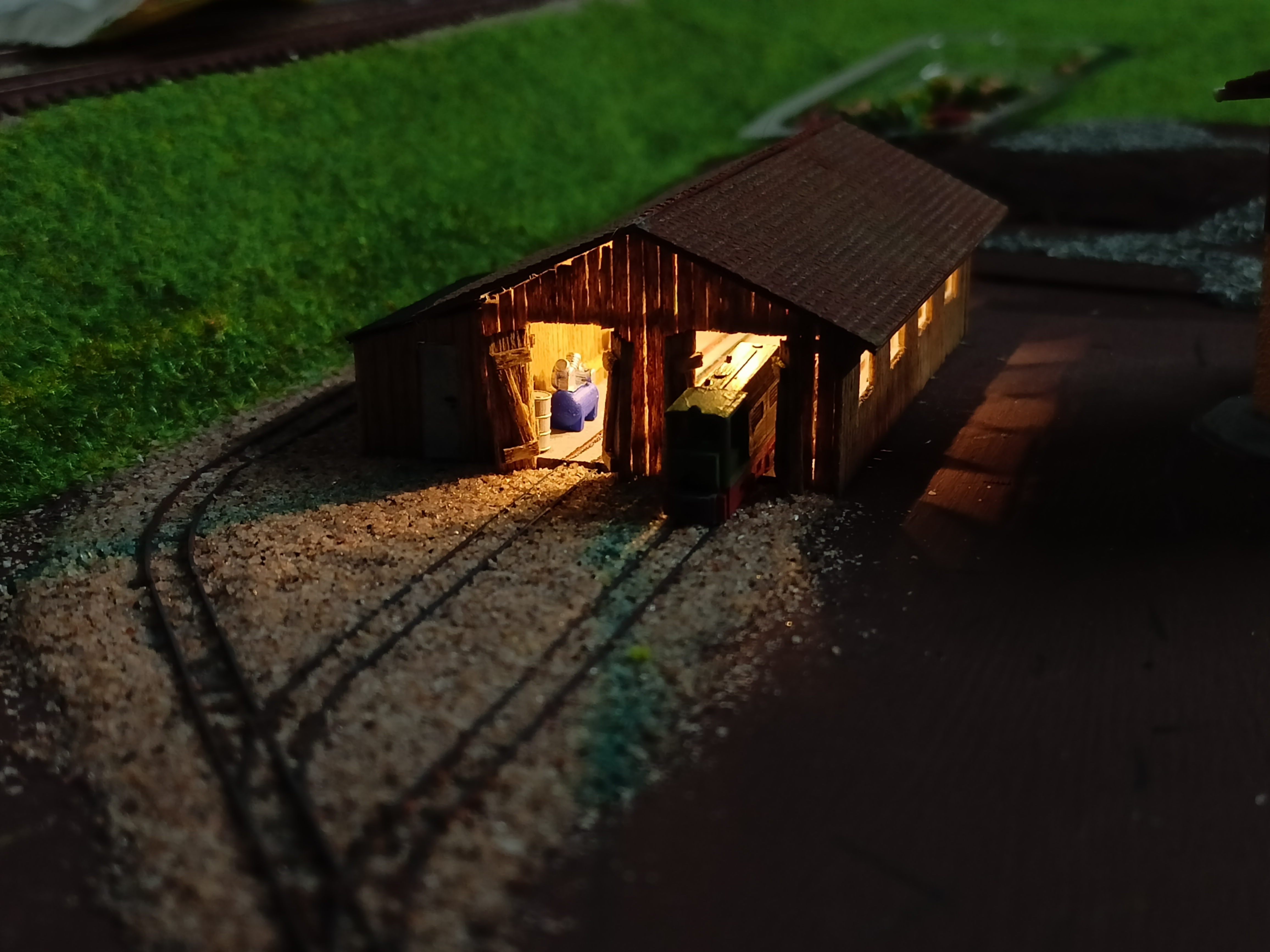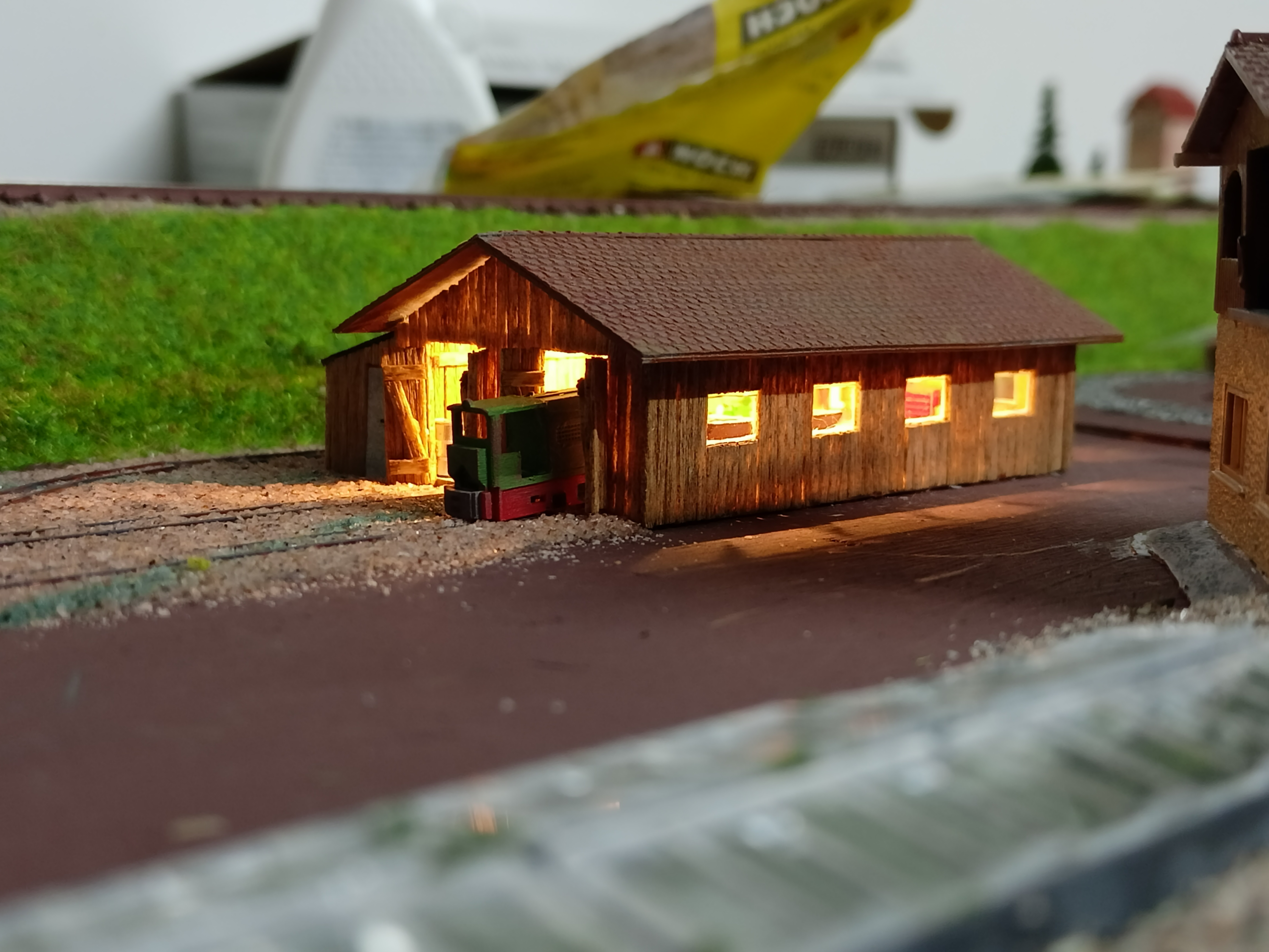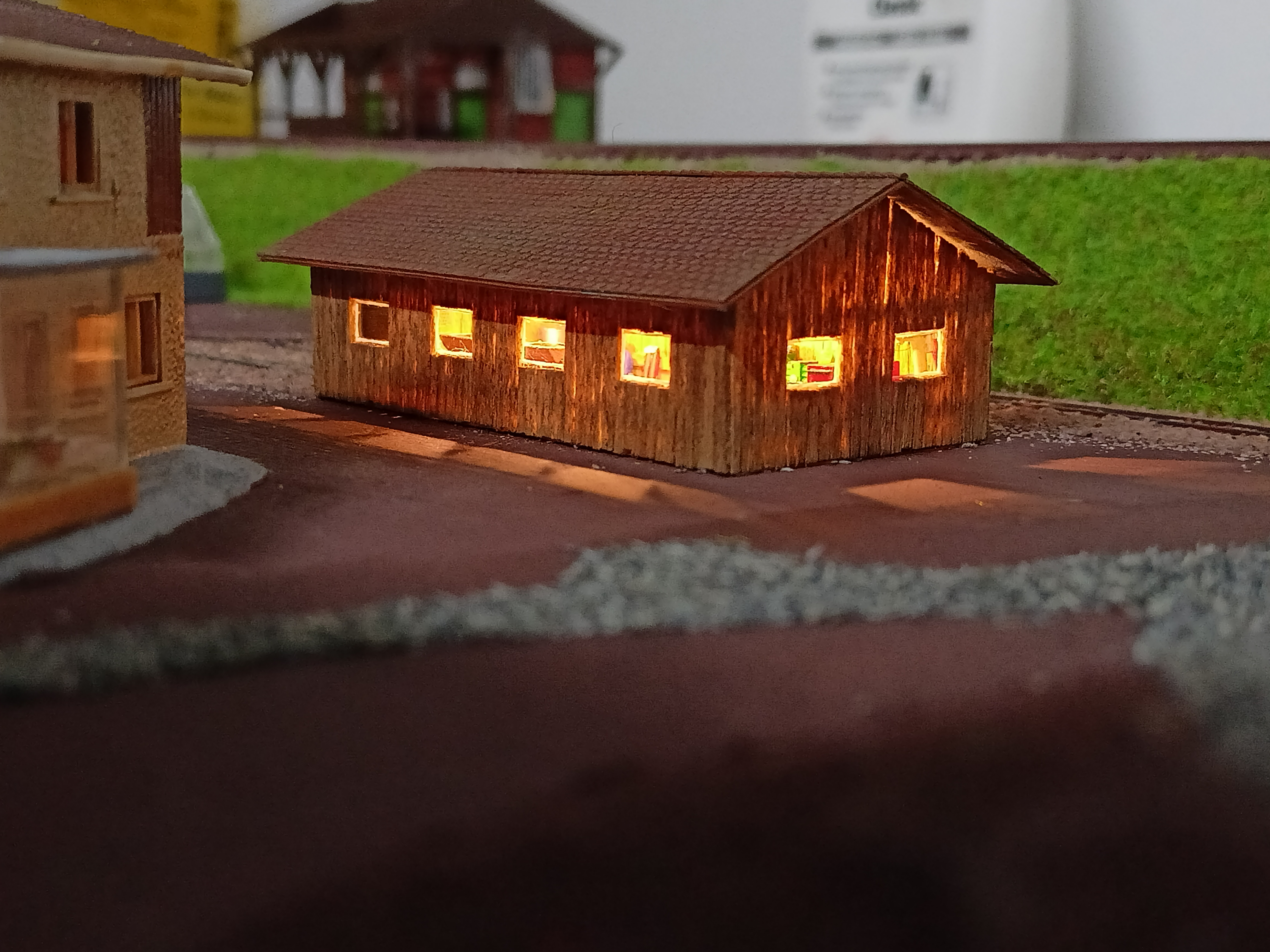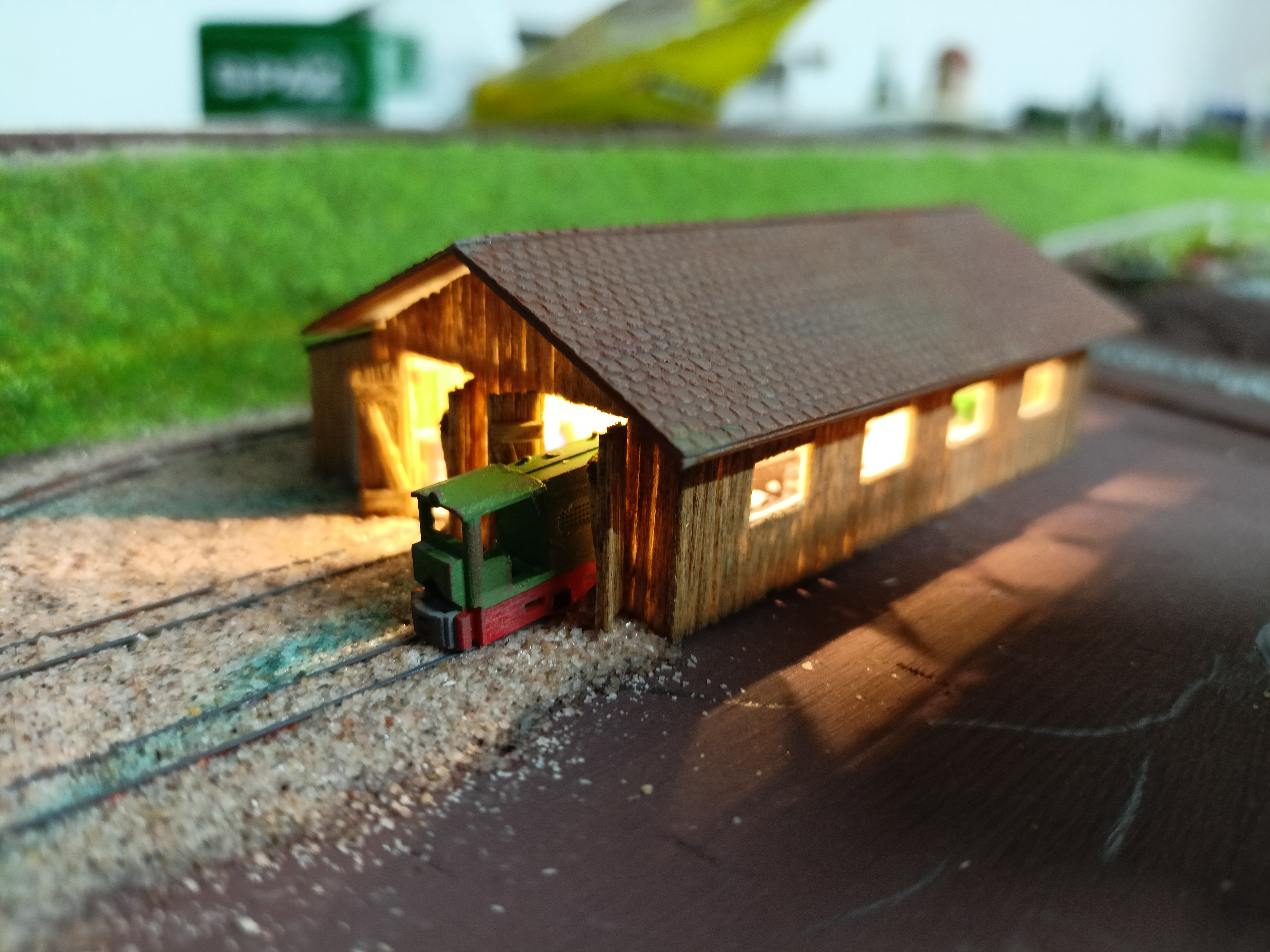 Wer hier aber kein Geld ausgeben möchte, kann auch den Hauptschuppen mit Dachpappe (also mit angemaltem Schleifpapier) decken. Alternativ kann ich mir noch Wellblech ganz gut vorstellen!
