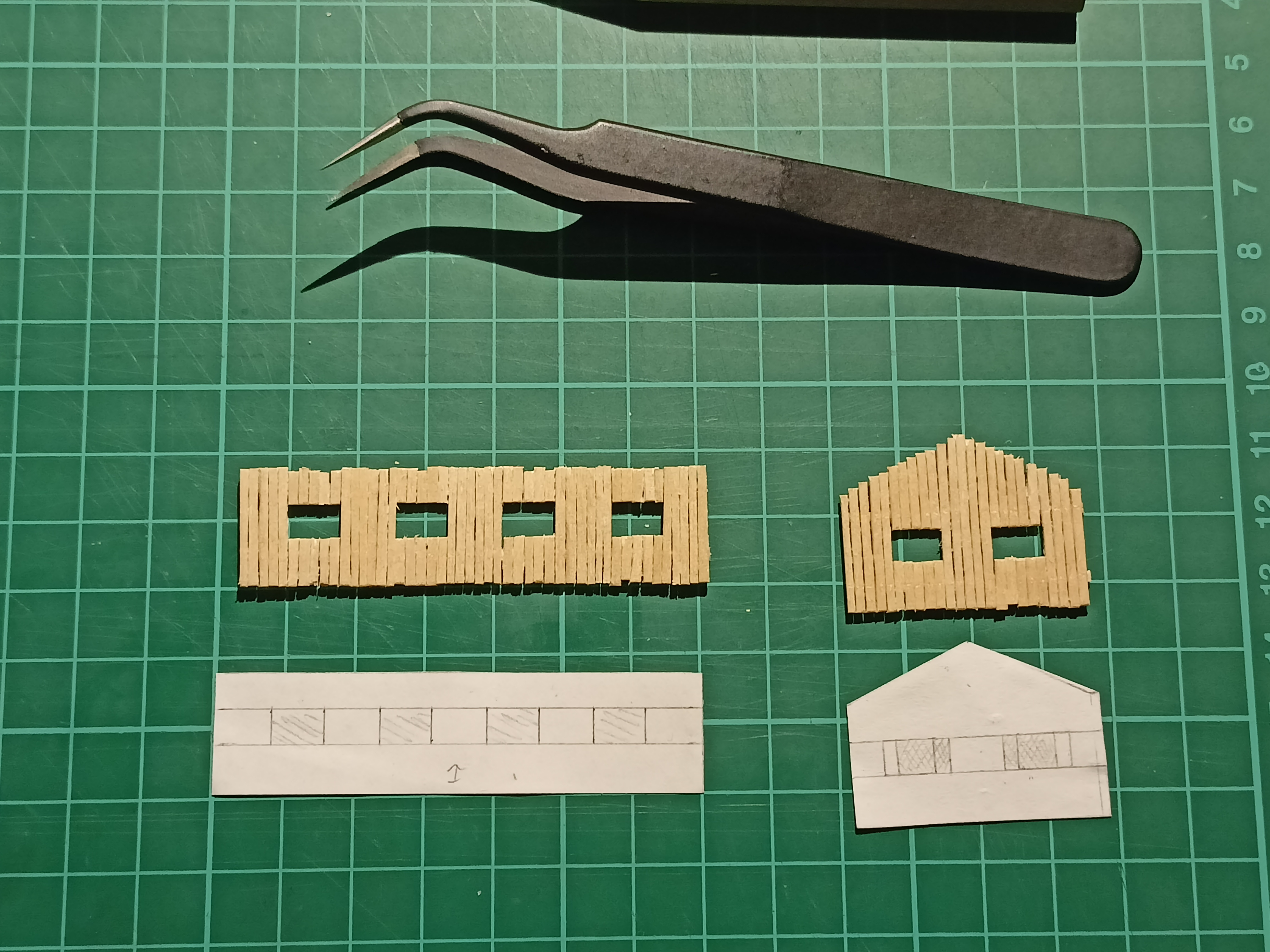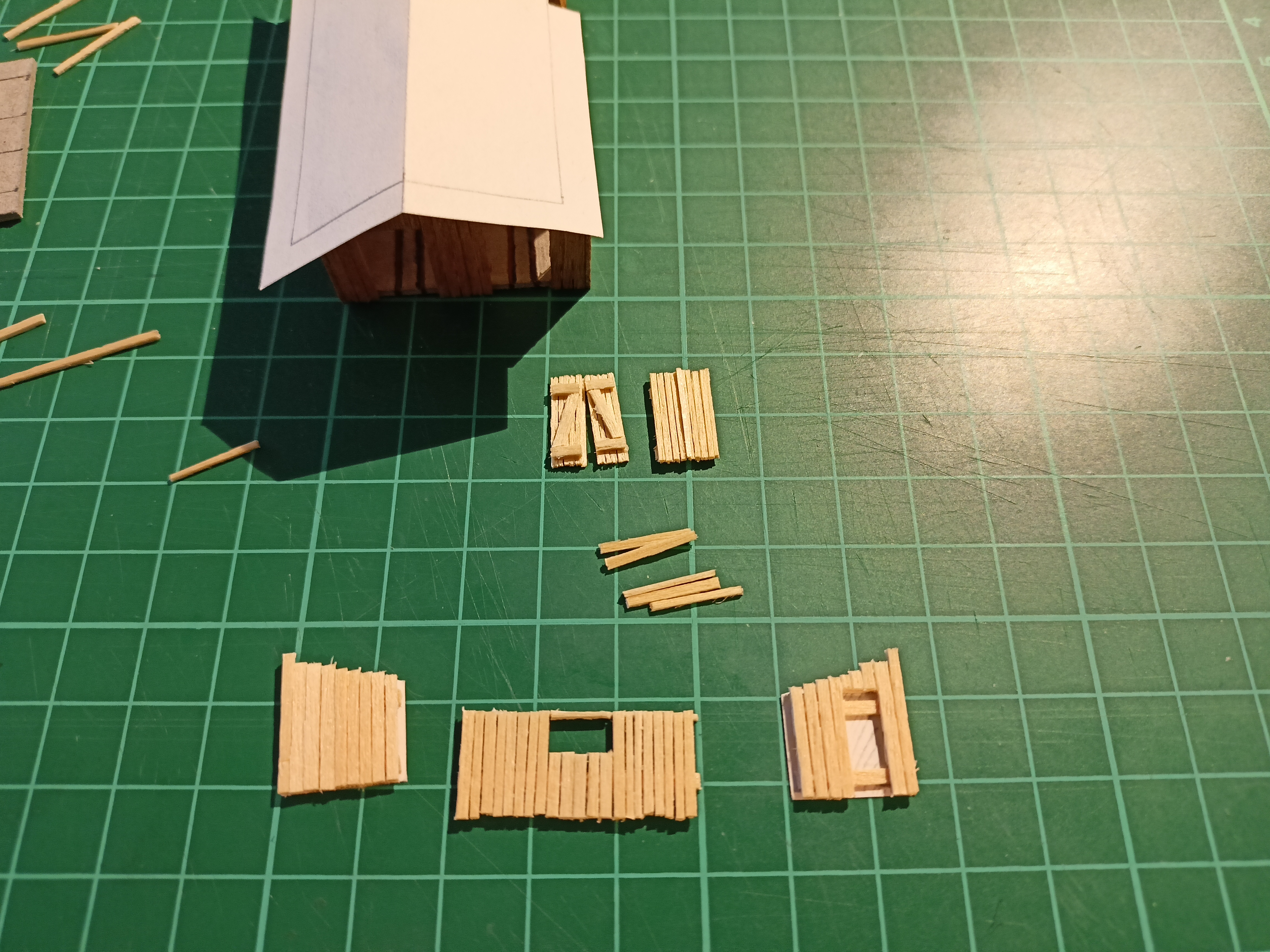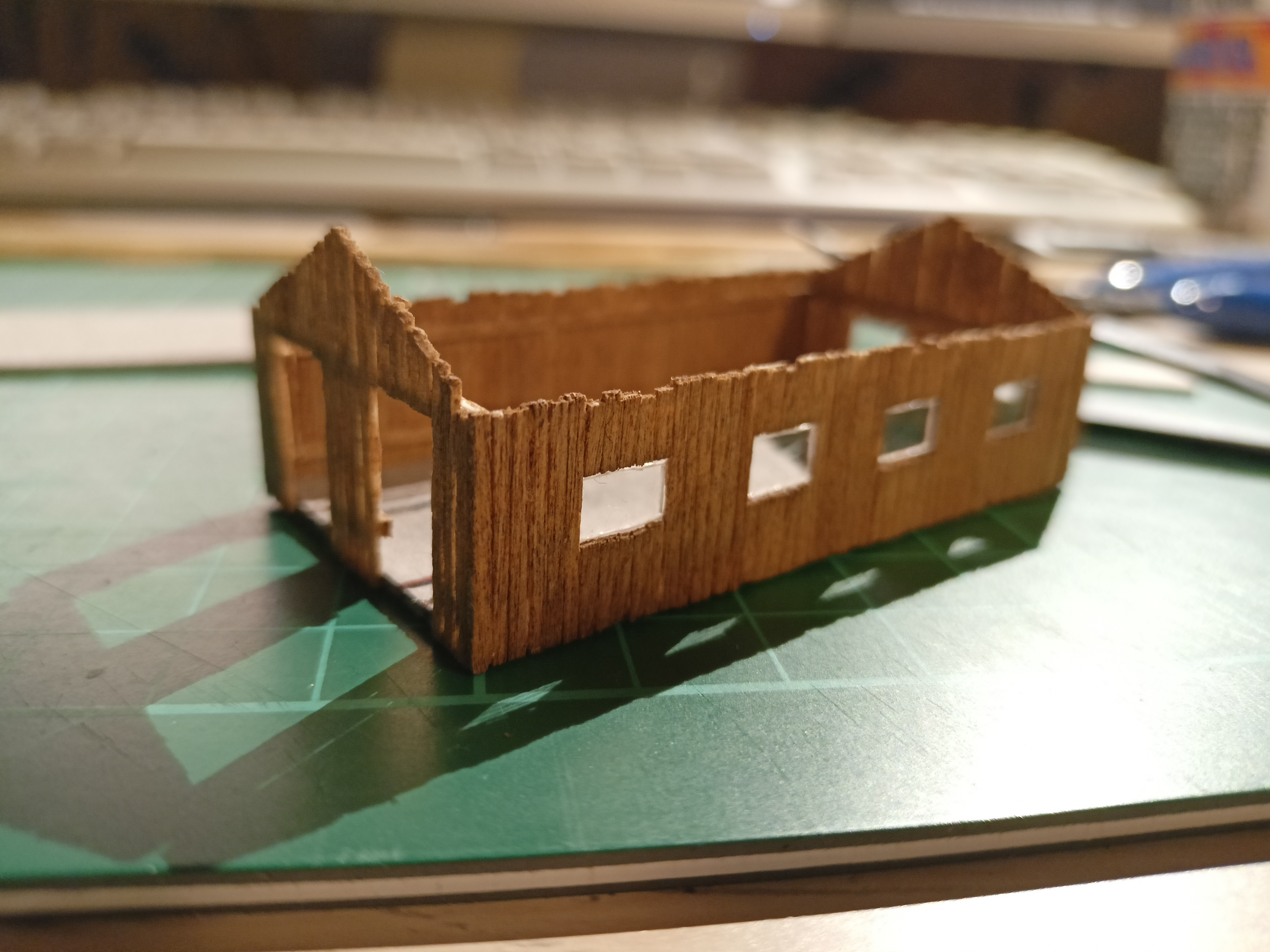 Genauso konnten alle Wände des Schuppens gebaut werden. Ich habe mich zunächst auf den Hauptschuppen konzentriert und erst anschließend den Anbau gesetzt.