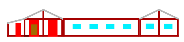 Die Maße wurden digital in Inkscape zusammengetragen und ein ungefähres Design überlegt. Da das Abstellgleis so viel Abstand zu den anderen beiden Gleise hat, bot es sich an, dazwischen noch einen kleinen Anbau hinzusetzen, in dem Werkzeuge, Ersatzteile und sonstiges untergebracht sein könnten.