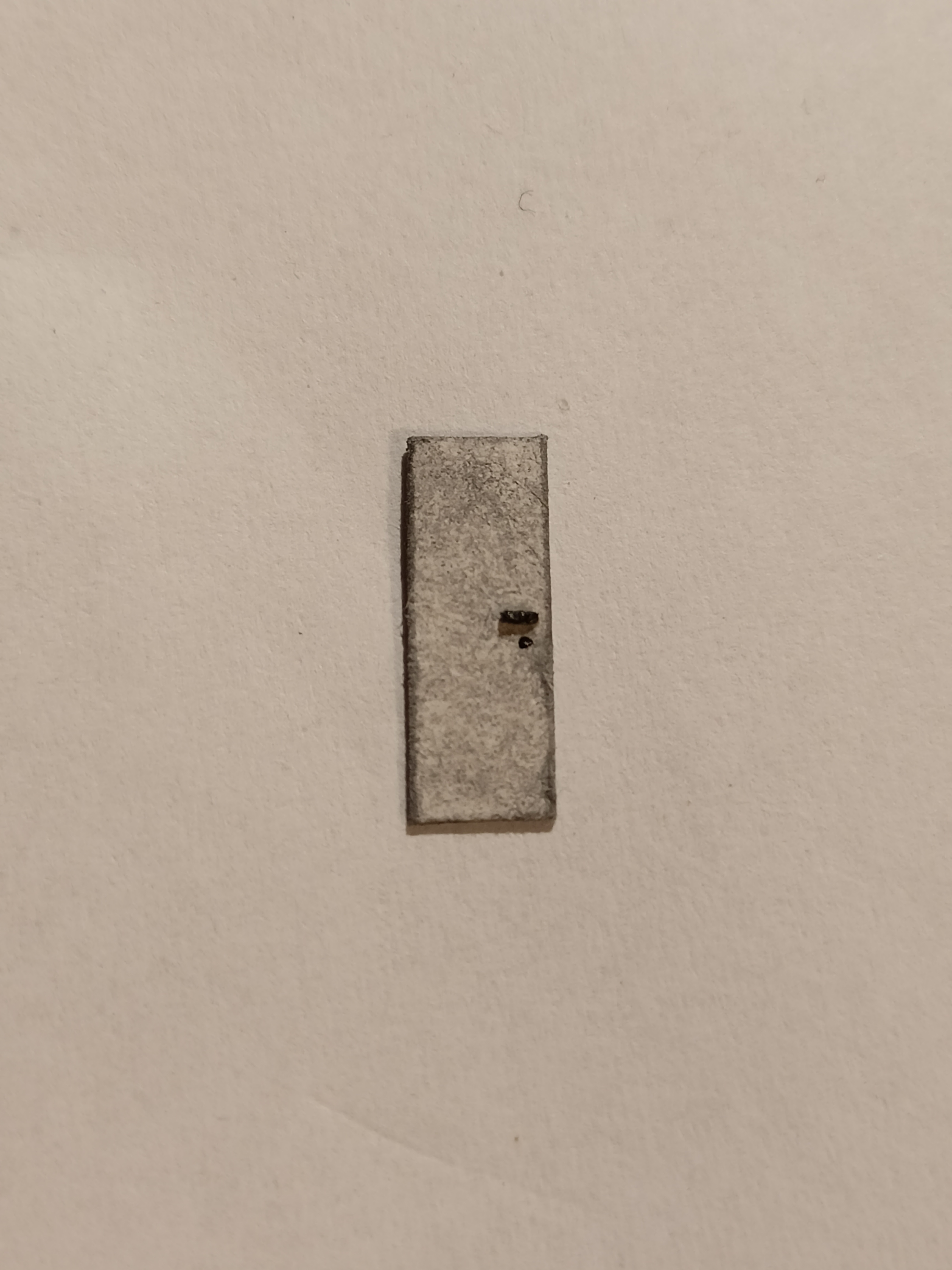 Die Türklinke besteht aus einem ganz dünnen Stück Draht. In diesem Fall von einem Widerstand-Beinchen. Ca. 1mm Länge reicht aus.