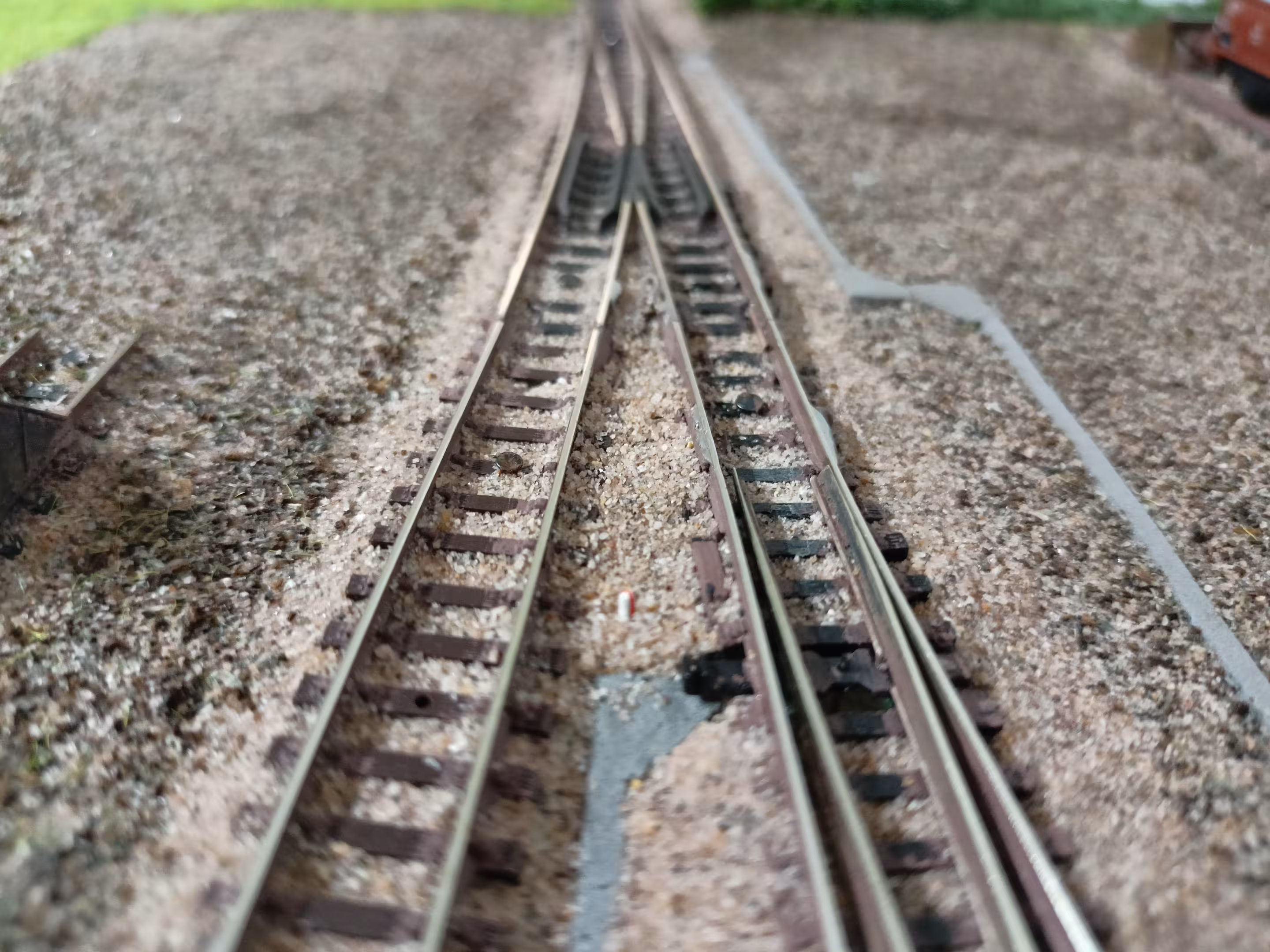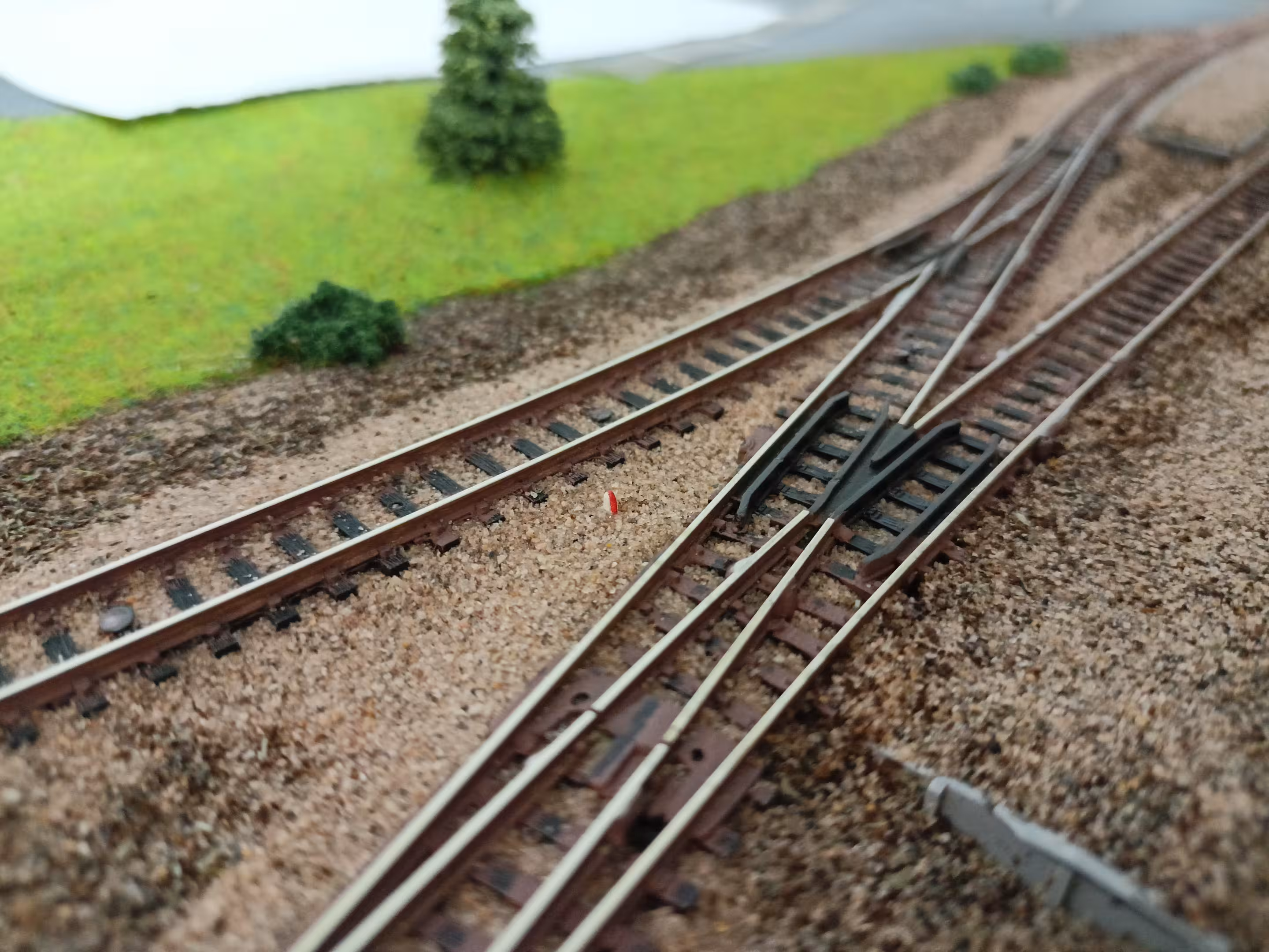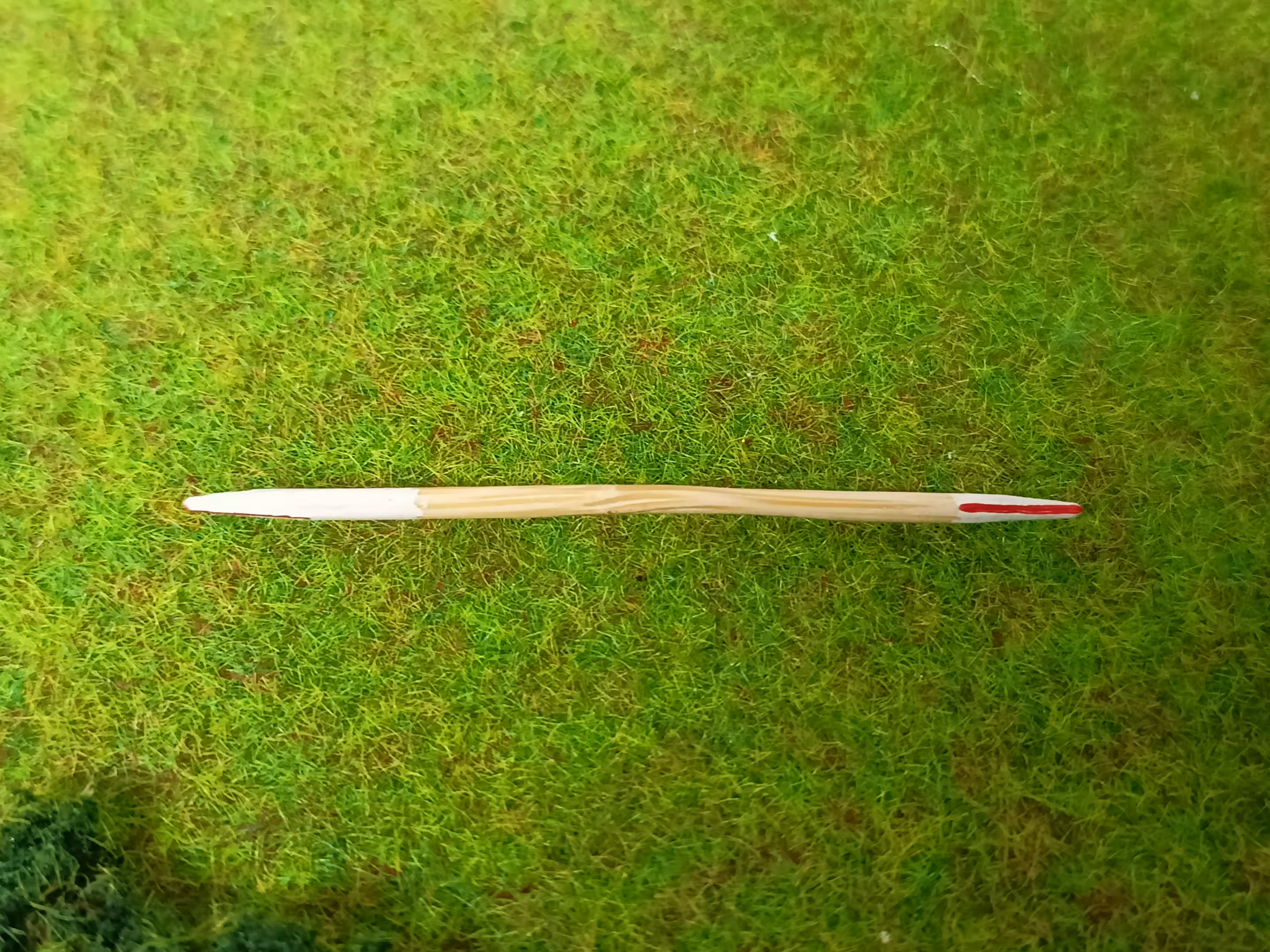 Grenzzeichen sind ein nettes Detail, was man schnell selbst basteln kann. Chris hat hierfür Zahnstocher genommen, den Kopf leicht abgerundet, weiß grundiert und mit einem ganz feinen Pinsel die roten Striche bis an die Spitze gemalt: